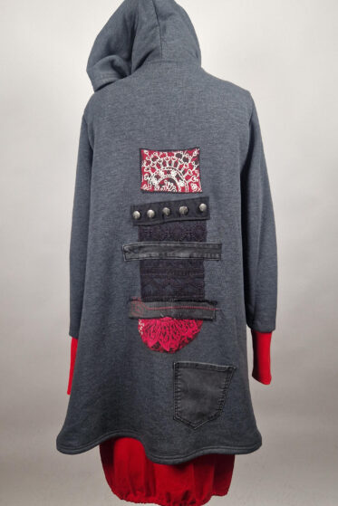Otulak, czyli taki coś, który otula ciepełkiem Twoje ciałko , zakrywa biodra, z przodu i z tyłu, ma duże kieszenie, w których możesz schować łapki, kaptur i kontrastowe mankiety, które nie tylko świetnie wyglądają, ale przede wszystkim dogrzewają nadgarstki. Każdy zrobiony przeze mnie otulak jest zupełnie wyjątkowy, robiony od początku do końca ręcznie i niezależnie od tego czy jest malowany, czy ozdobiony kolażem tkanin, czy ma jedno i drugie na pewno nikt nie będzie miał takiego OTULAKA jak TY!