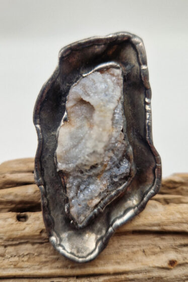 Agat w niezwykłym kolorze, a dookoła po prostu ręcznie robiona metaloplastyka. Pierścionek ma regulowaną obrączkę, więc pasuje na każdy palec…ale możesz powiesić go na łańcuszku lub rzemieniu, jeśli nie lubisz pierścionków, a podoba Ci się forma i kamień…