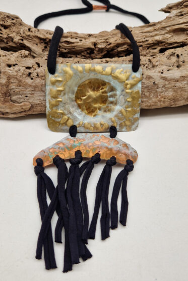 Piękny betonowo-granatowo-czerwono-niebieski ,,nakrapiany”wisior, taka mapa nieba, dla królowej kosmosu …zupełnie niesamowita rzeźba , którą możesz mieć zawsze przy sobie…
