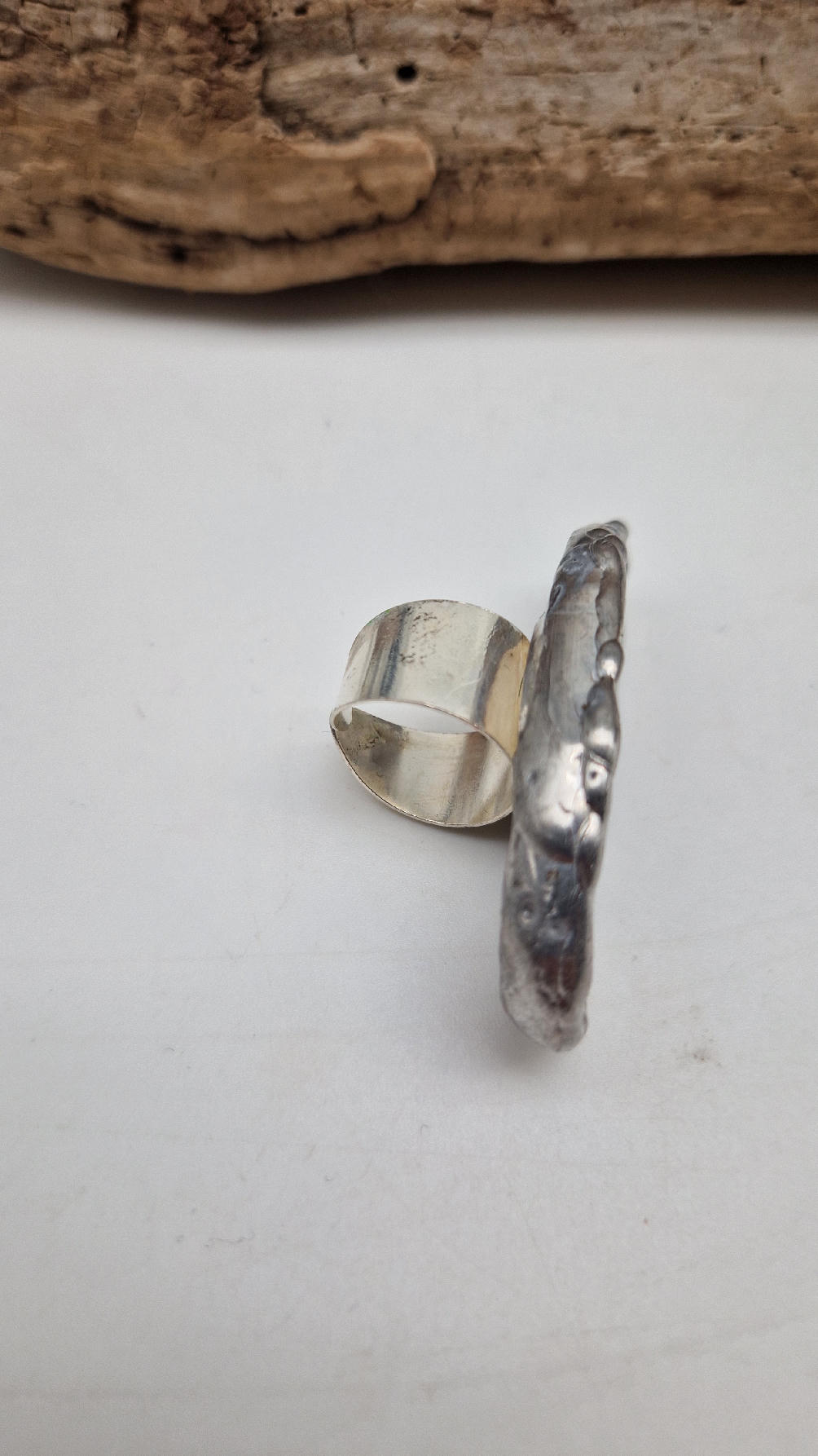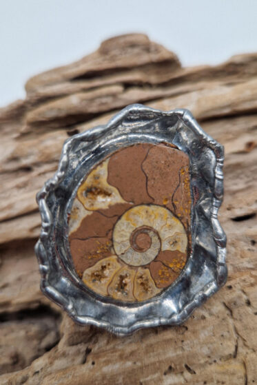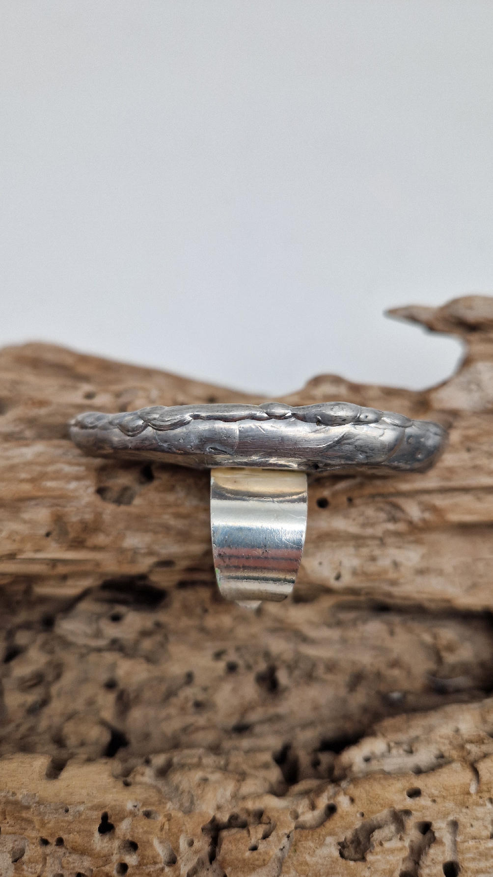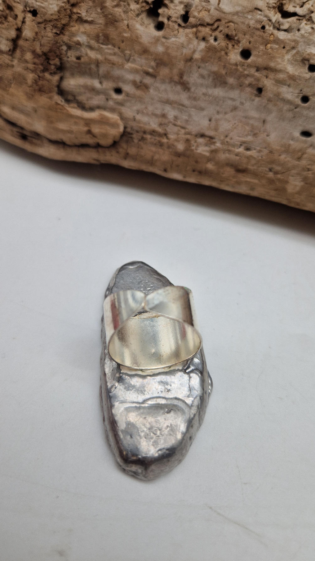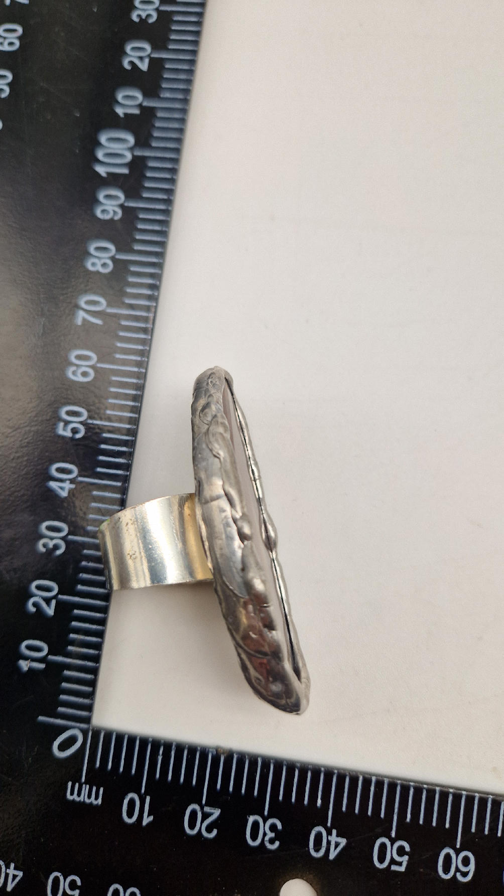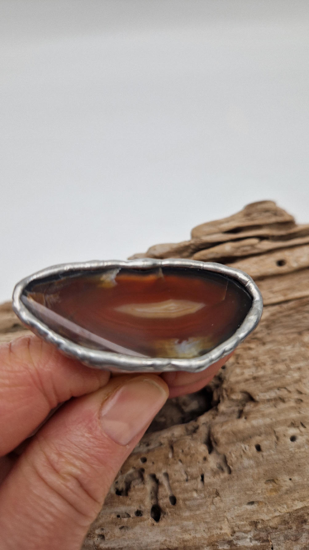 Duży ,podłużny pierścionek, z agatowym oczkiem w kolorze ciemnego miodu z czekoladą….piękny agat z urozmaiconym przekrojem, oprawiony w kutą i patynowaną miedź. Piękna metaloplastyka z pięknym kamieniem . Pierścionek ma regulowaną obrączkę, więc pasuje na każdy palec…ale możesz powiesić go na łańcuszku lub rzemieniu, jeśli nie lubisz pierścionków, a podoba Ci się forma i kamień…