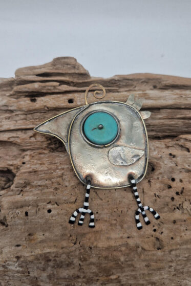 Brocha wykonana ręcznie z blachy alpakowej (alpaka tzw nowe srebro) i miedzi.
