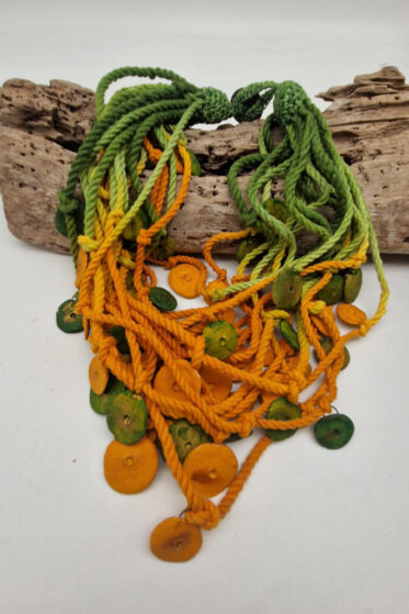 pasujących elementów (jak ten biało-czarny guzik i pasiasta kulka), które przyciągają wzrok, cudowny , zapleciony naszyjnik , który doda blasku każdej sukience.