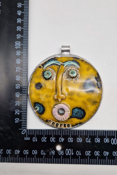 Biżuteria autorska – Wisior powstał na bazie przepięknej ceramiki oprawionej w patynowaną i posrebrzaną alpakę.