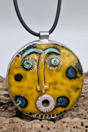 Biżuteria autorska – Wisior powstał na bazie przepięknej ceramiki oprawionej w patynowaną i posrebrzaną alpakę.