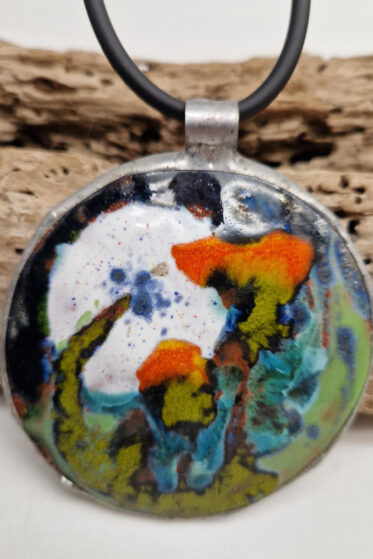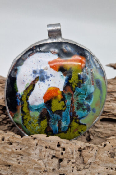 Prześliczny, radosny, artystyczny, mega pozytywnie zakręcony wisior z filcu, takie bajkowe słońce zamknięte w metalowej kopercie.