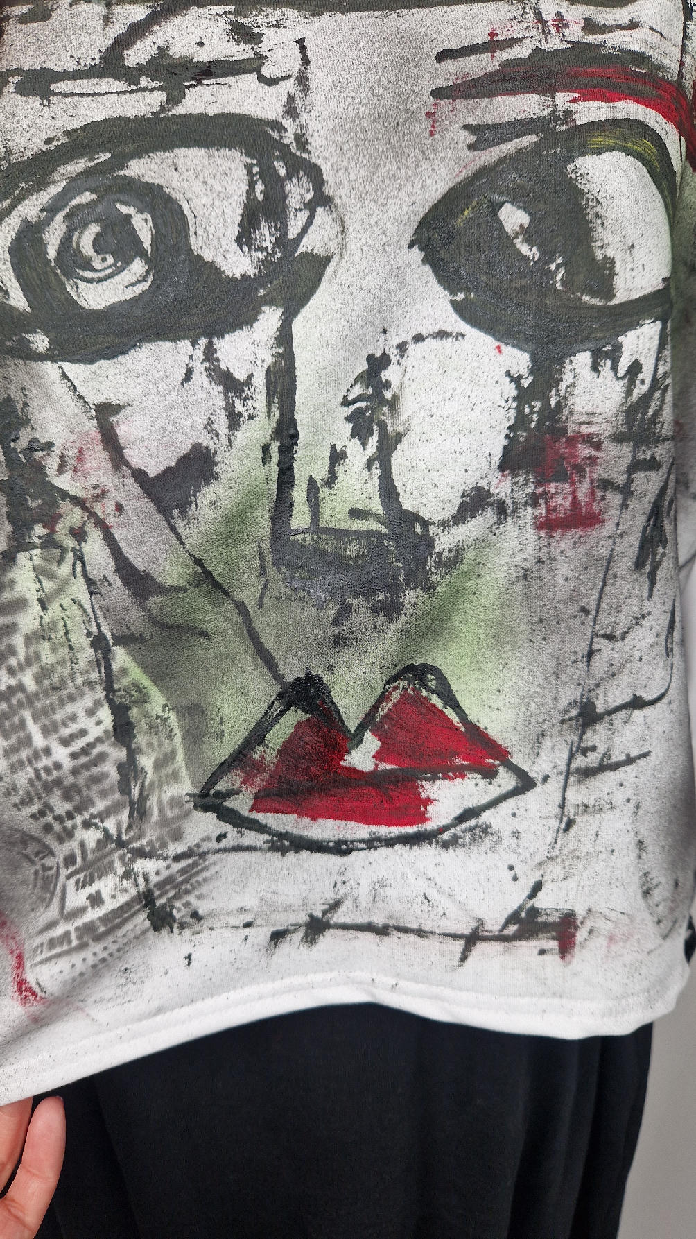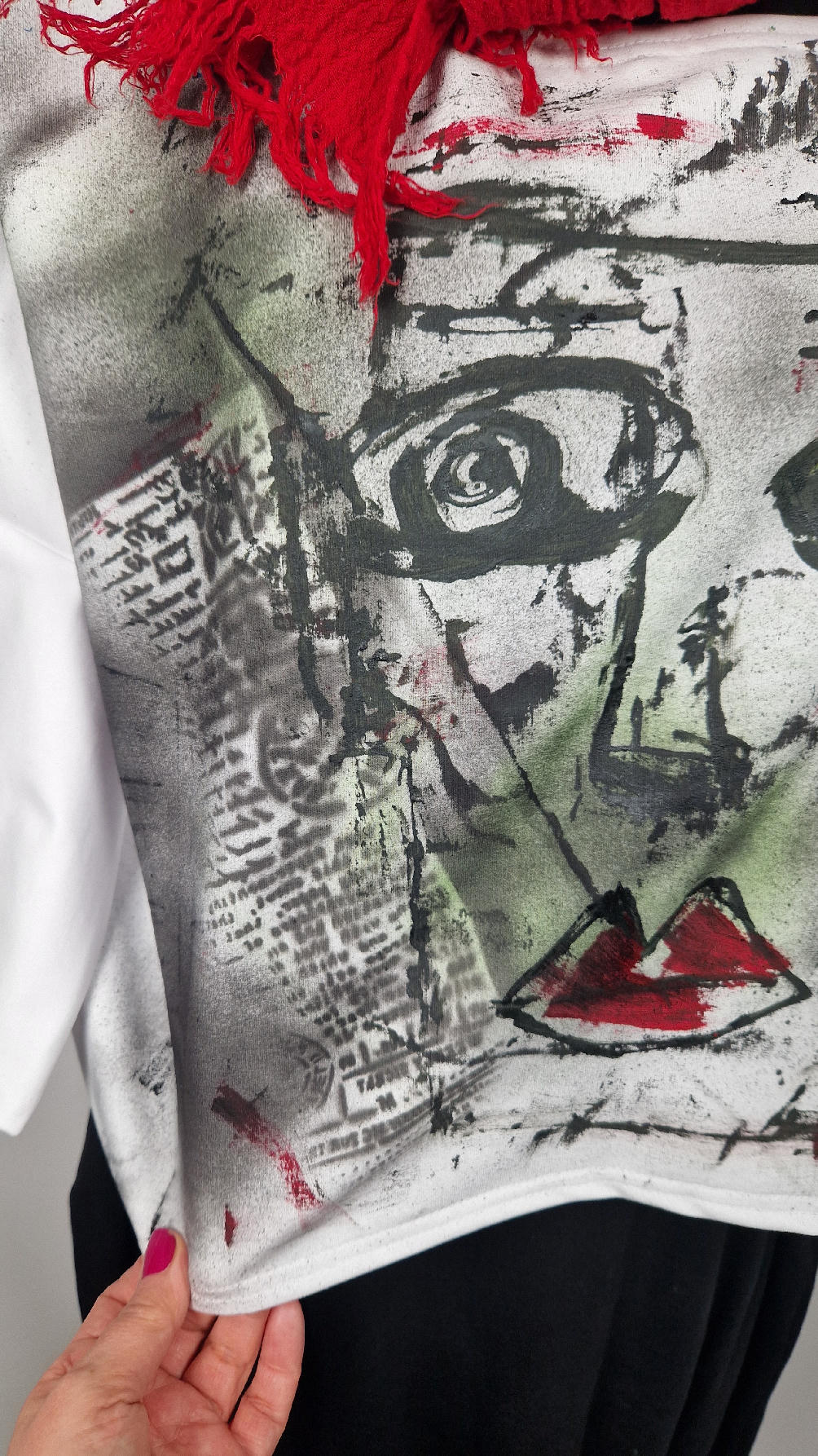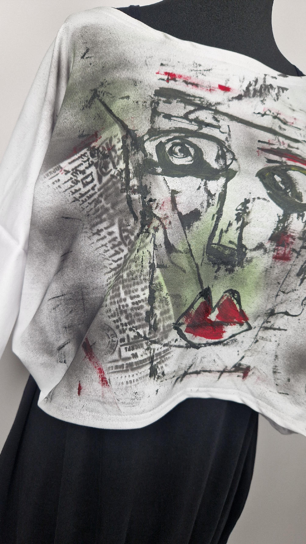 Bluzka uszyta z białej, miękkiej wysokiej jakości bawełny z pętelką… lekko rozszerzana do dołu, krótsza z przodu, ciut dłuższa z tyłu , z rękawem 3/4, ręcznie malowana farbami, które się nie spierają , taką bluzkę będziesz mieć tylko TY !