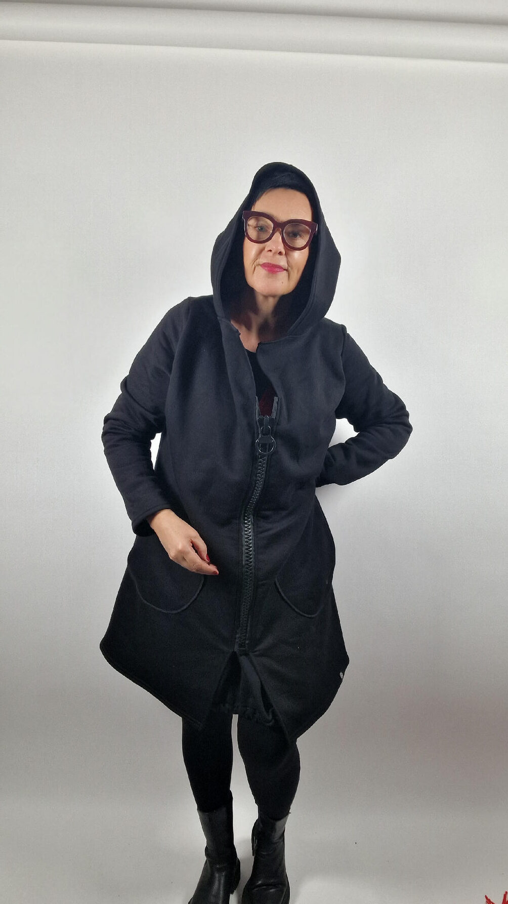 Bluzo-płaszcz Pan Luis obłędnie zgrabny, wygodny, wszystko zakrywający COŚ , który pokochasz od pierwszego założenia. Pan Luis uszyty jest z mięciutkiej , drapanej bawełny, jest długi , gładki, ale ma duży zamek- ekspres-suwak, który jest świetną ozdobą, ma duże kieszenie na łapki , duży kaptur i proste rękawy, które możesz podwinąć lekko i założyć kontrastowe zarękawki. Pan Luis jest wygodny, oryginalny, niebanalny . Świetnie nadaje się tez dla mężczyzn.