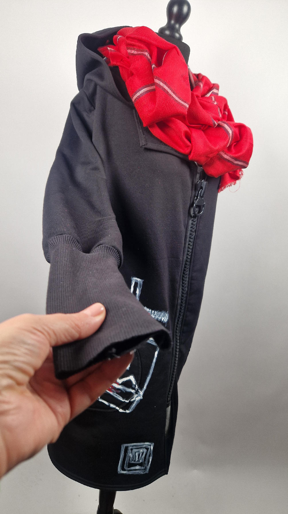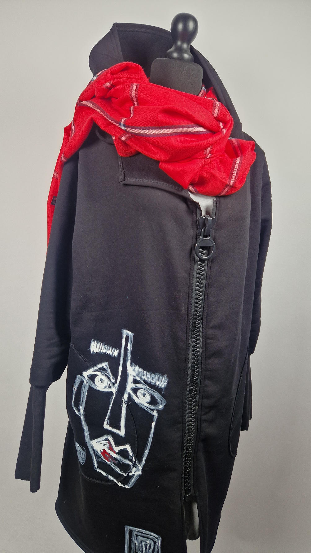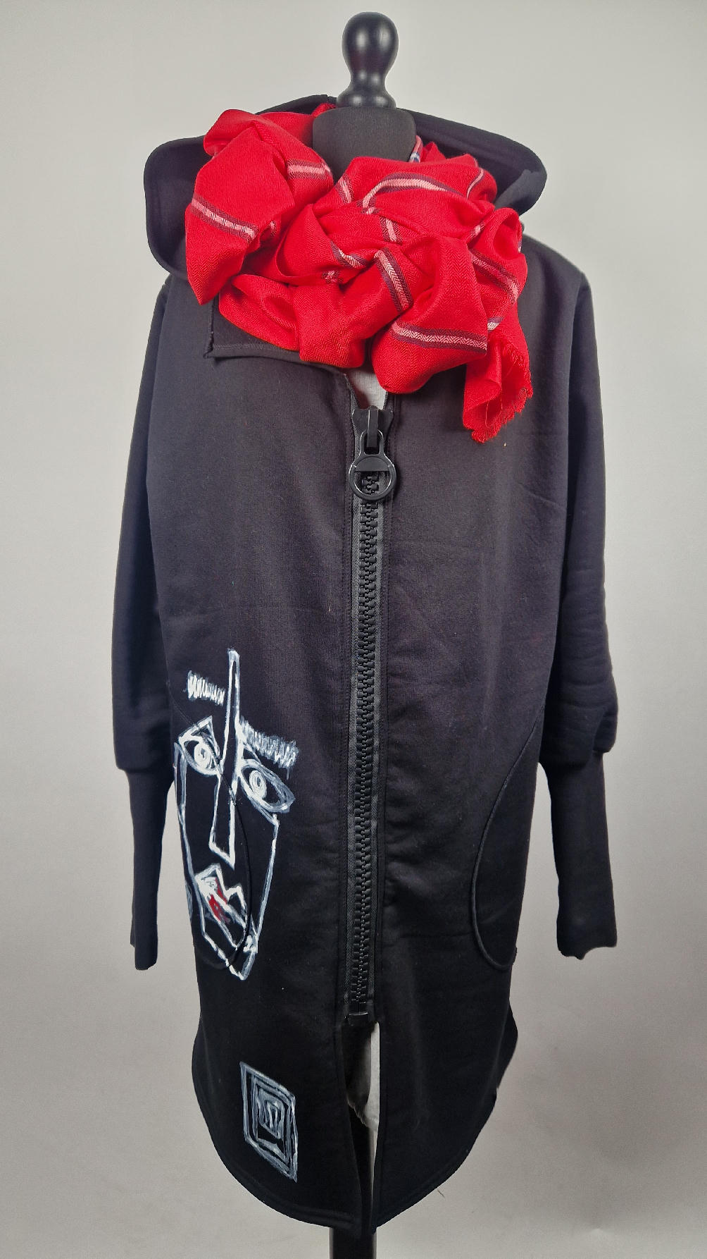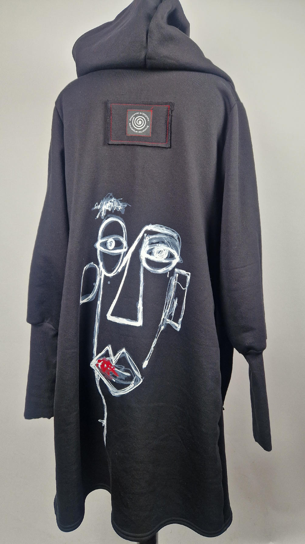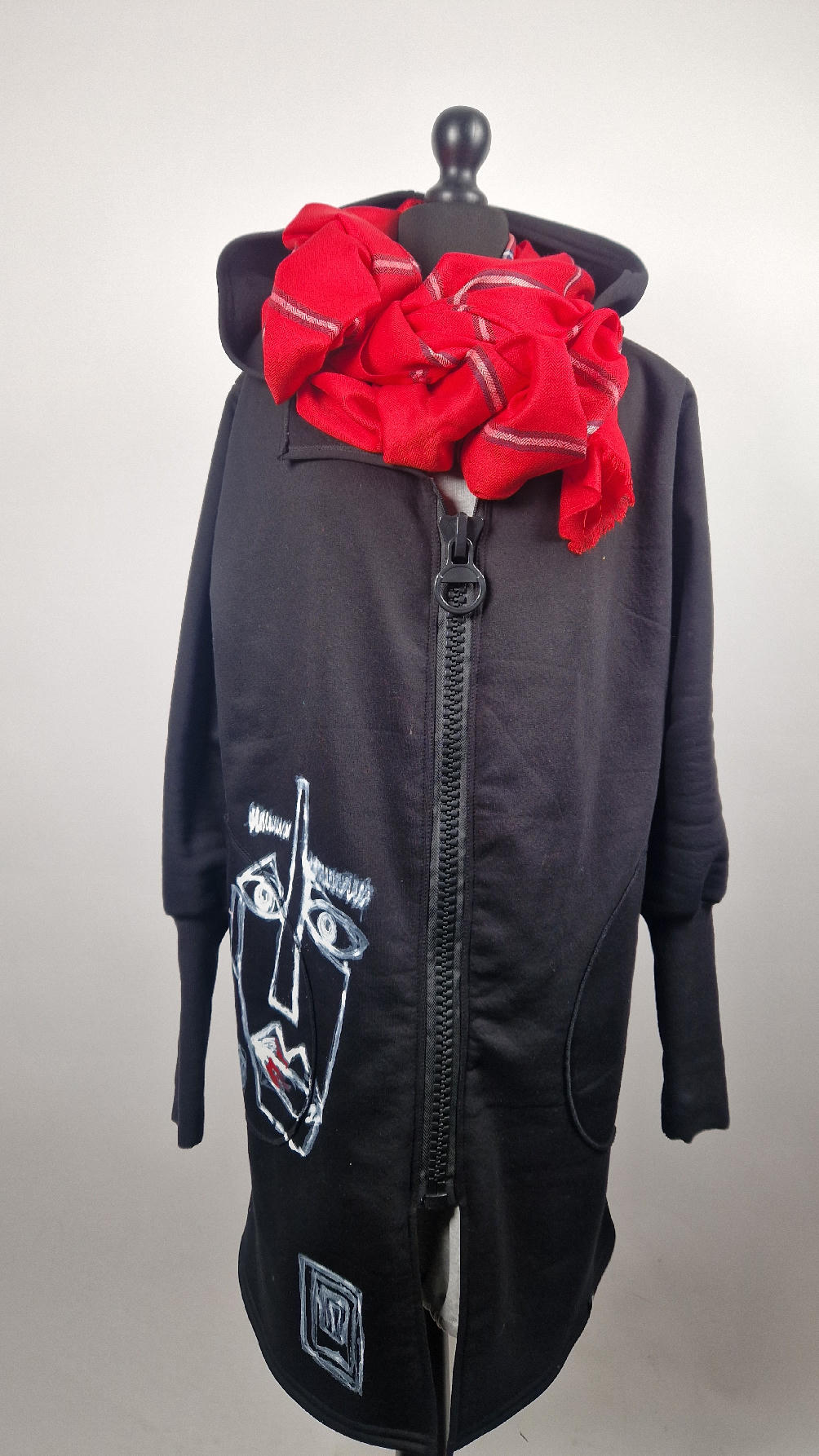 Ręcznie malowany przeze mnie bluzo-płaszcz JeanLuis obłędnie zgrabny, wygodny, wszystko zakrywający COŚ , który pokochasz od pierwszego założenia. Pan Luis uszyty jest z mięciutkiej , drapanej bawełny, jest długi , gładki, ale ma duży zamek- ekspres-suwak, który jest świetną ozdobą, ma duże kieszenie na łapki , duży kaptur i długie rękawy z długimi, czarnymi mankietami, Jean Luis jest wygodny, oryginalny, niebanalny . Świetnie nadaje się tez dla mężczyzn.