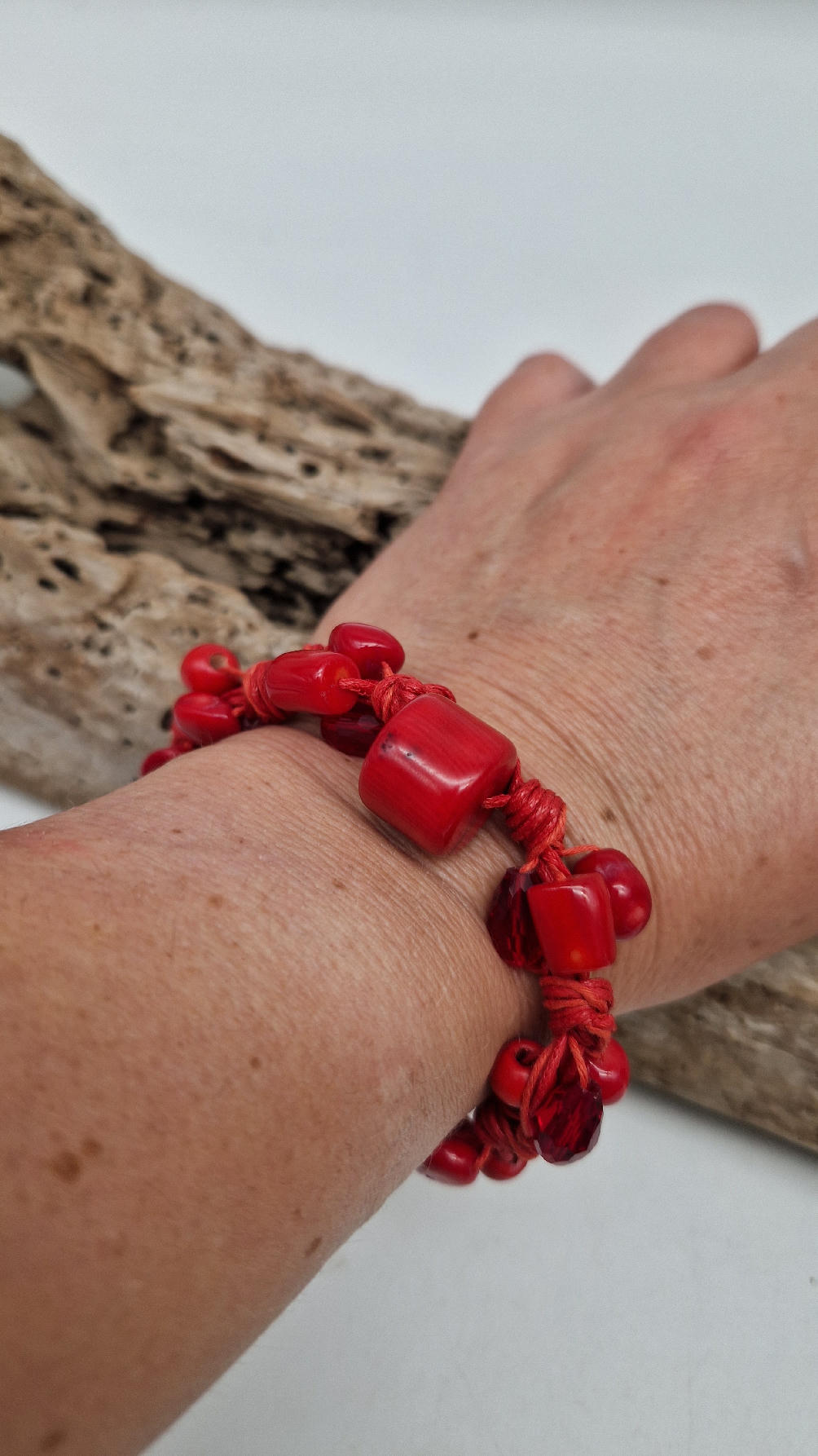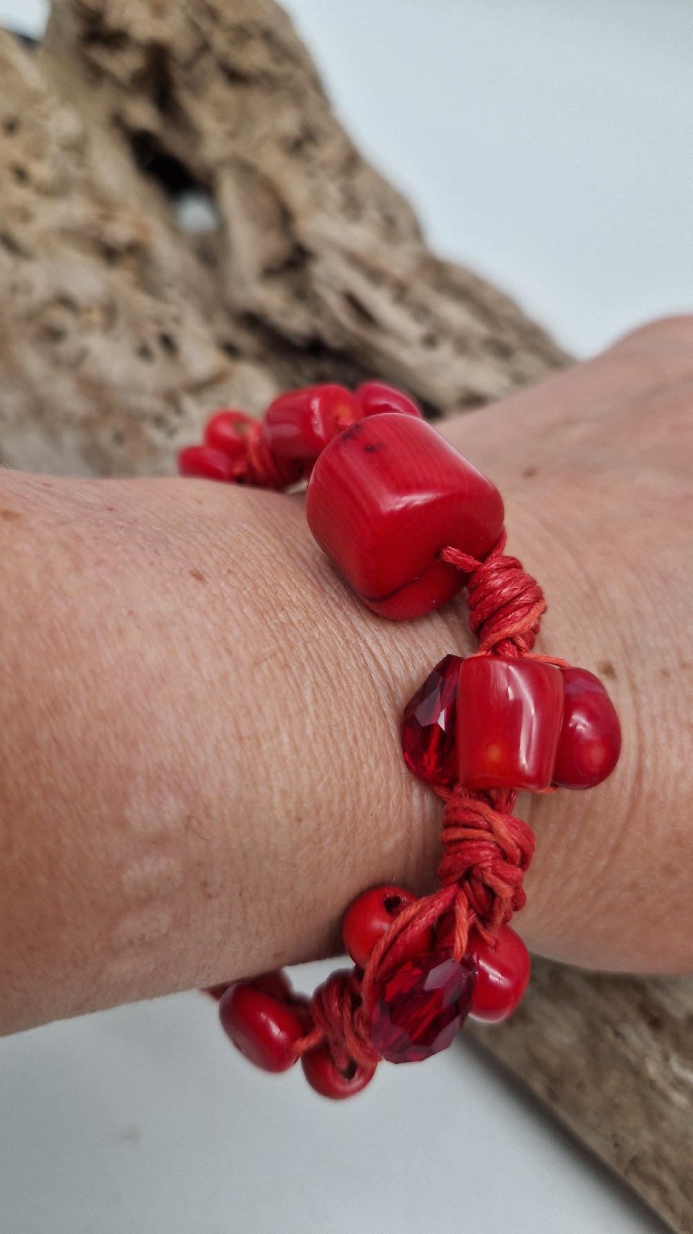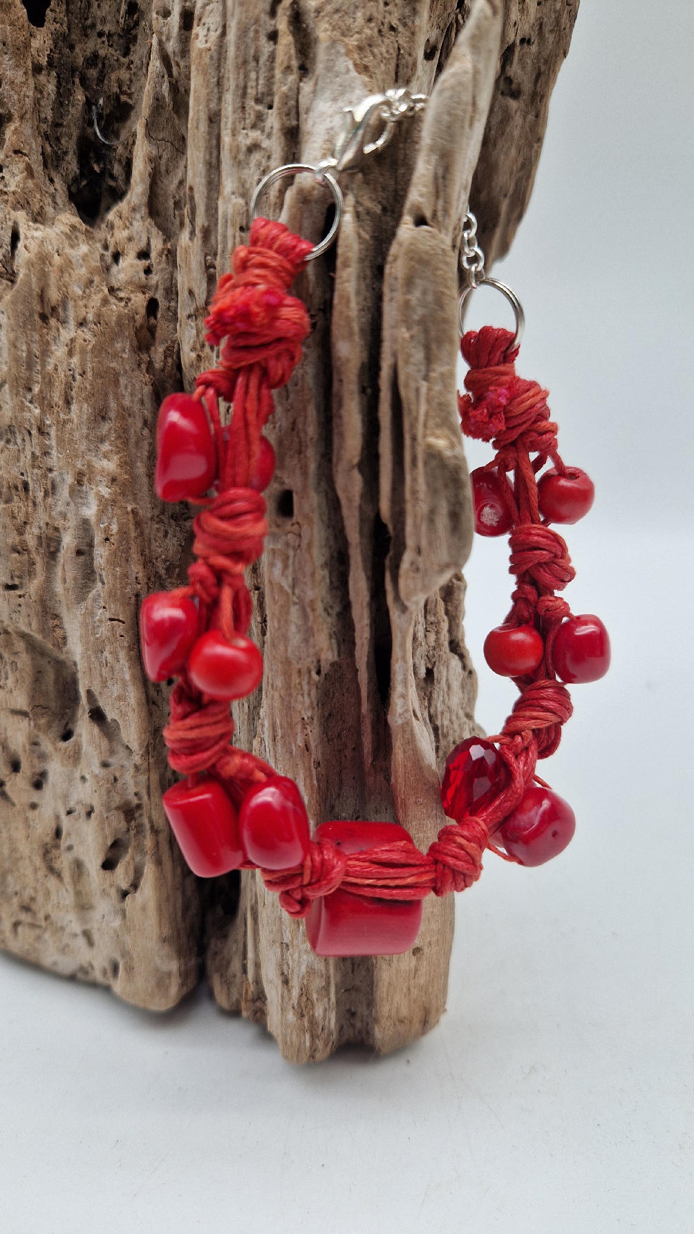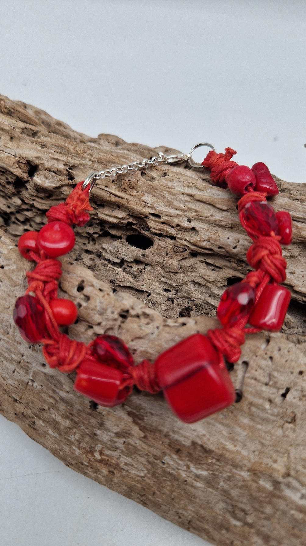 Piękna megaczerwona bransoleta stworzona z mnóstwa czerwonych korali i koralików…taka piękna kompozycja na czerwonych sznurkach, pełna miłości…