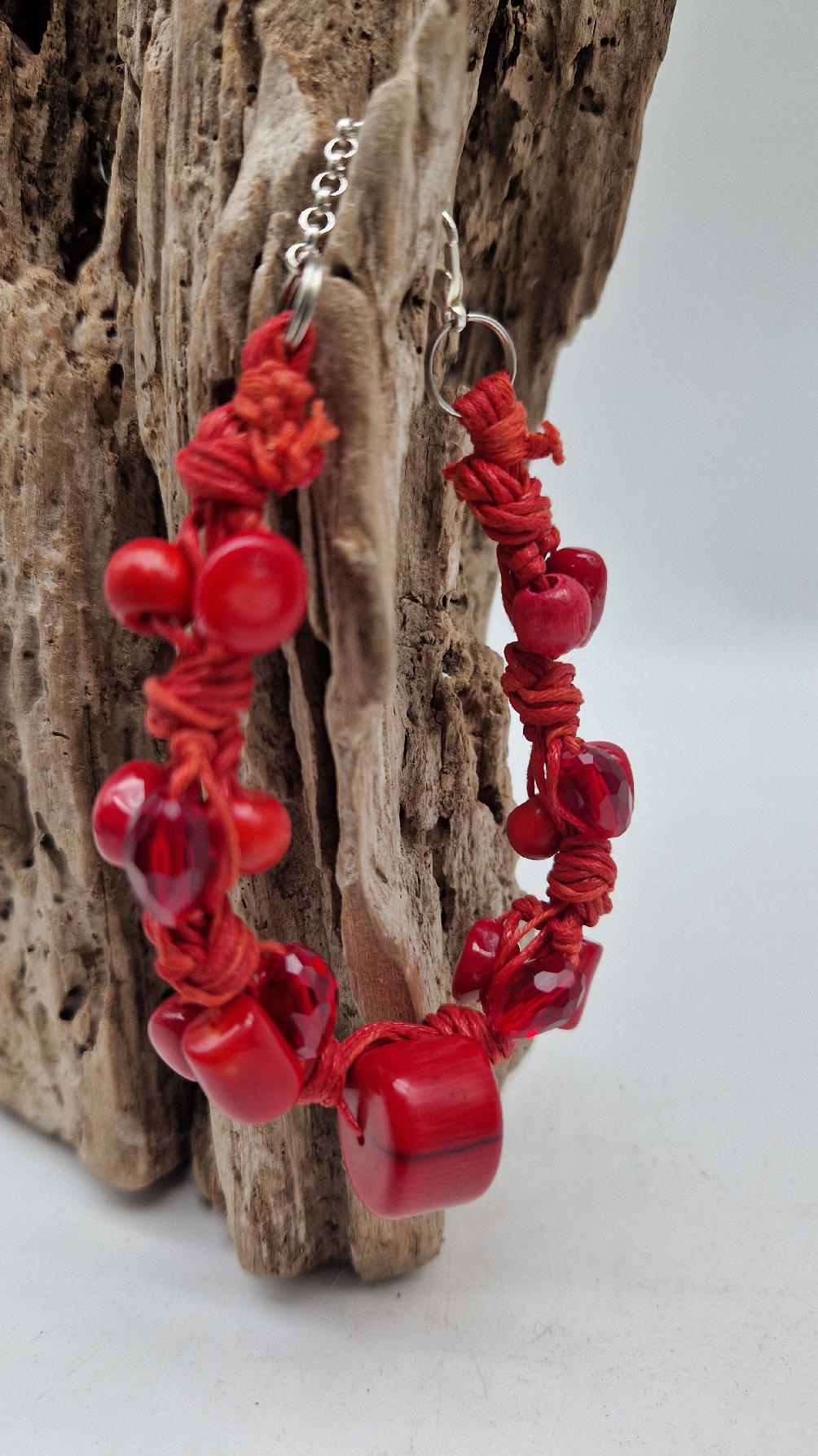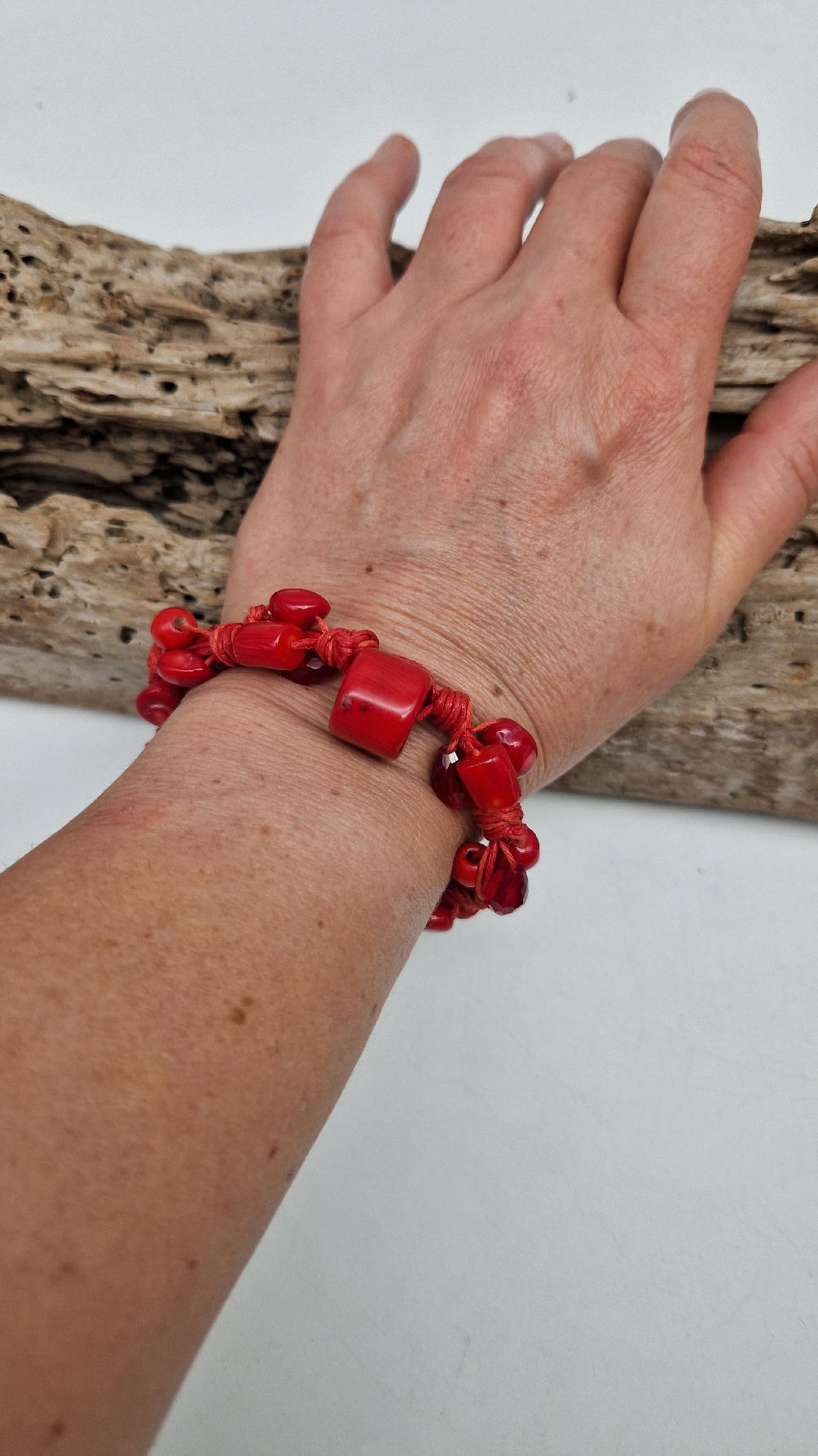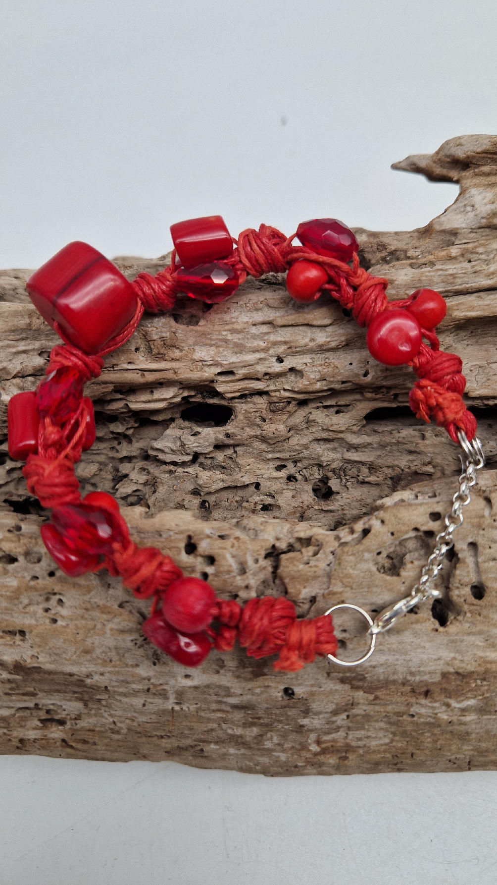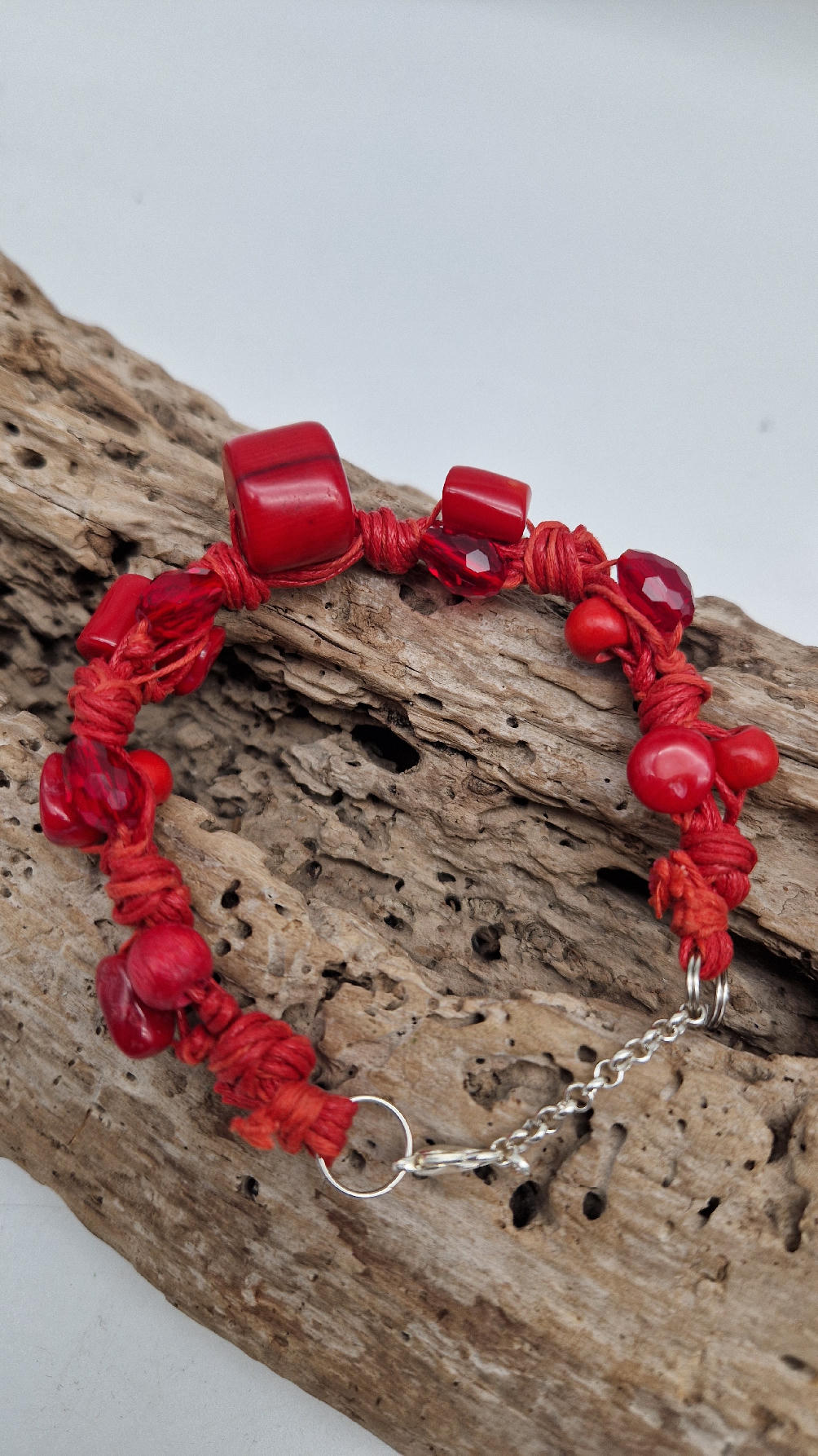 Piękna megaczerwona bransoleta stworzona z mnóstwa czerwonych korali i koralików…taka piękna kompozycja na czerwonych sznurkach, pełna miłości…