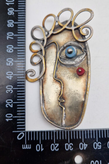Brocha wykonana ręcznie z blachy alpakowej (alpaka tzw nowe srebro) i miedzi.