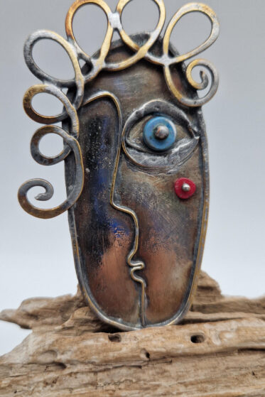 Brocha wykonana ręcznie z blachy alpakowej (alpaka tzw nowe srebro) i miedzi.