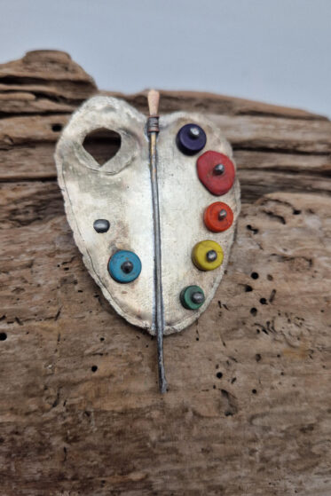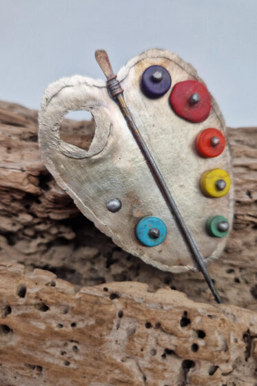 Cynowana, patynowana, malowana i lutowana ręcznie . Totalnie unikatowa, bo nawet jak ma siostrę, czy brata…. to i tak każda z nich jest inna.