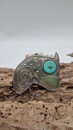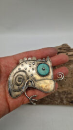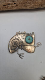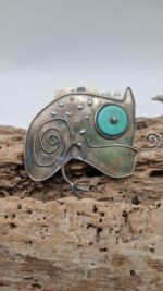 Cynowana, patynowana, malowana i lutowana ręcznie . Totalnie unikatowa, bo nawet jak ma siostrę, czy brata…. to i tak każda z nich jest inna.
