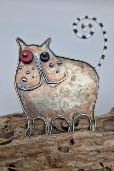 Cynowana, patynowana i lutowana ręcznie . Totalnie unikatowa, bo nawet jak ma siostrę, czy brata…. to i tak każda z nich jest inna.