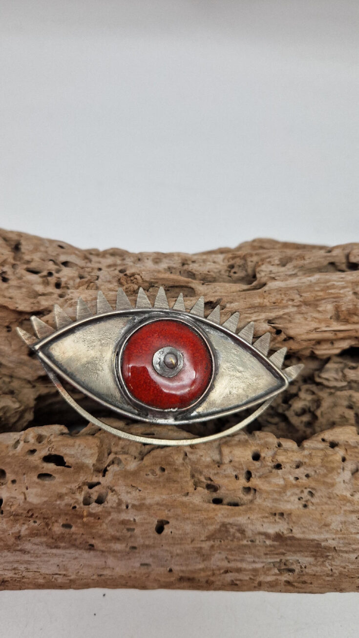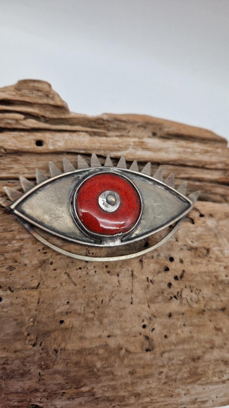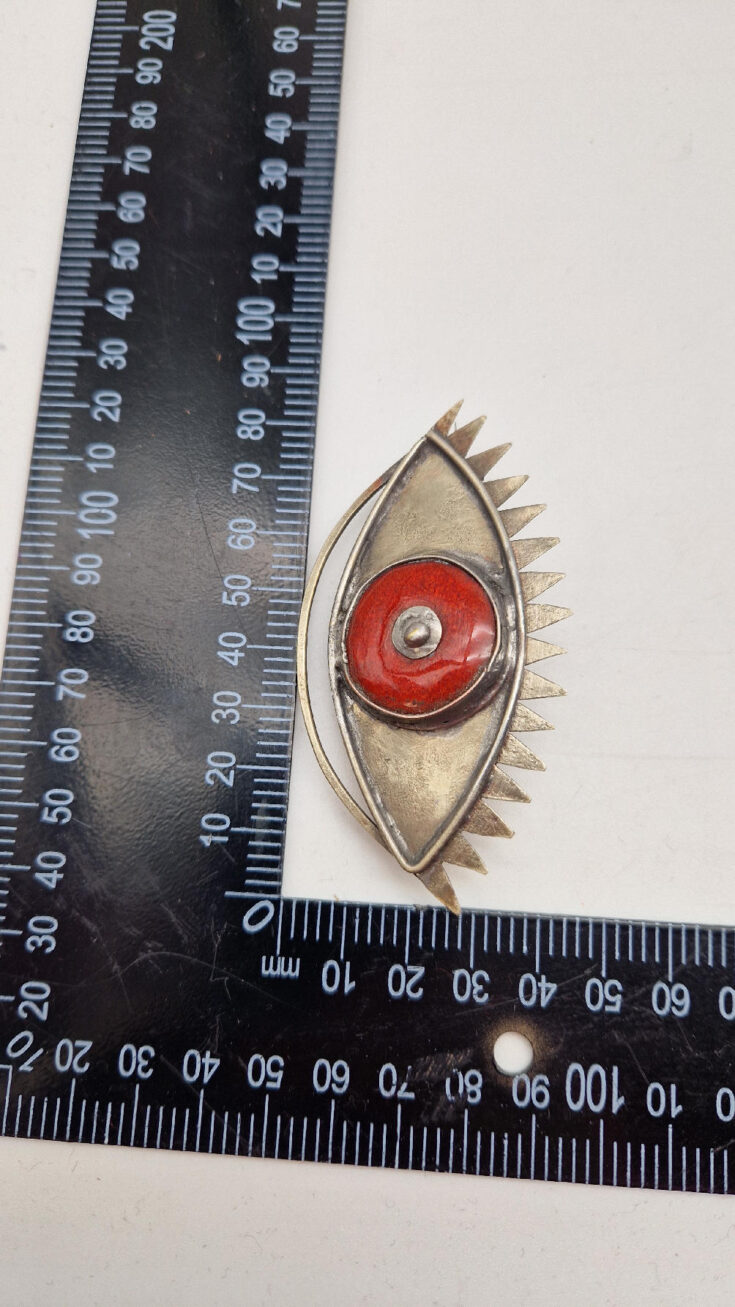 Duża, obłędna, metalowa brocha z alpaki, z ręcznie robioną ceramiką ; duże oko ,które przyciąga wzrok i nikt Ci się nie oprze…