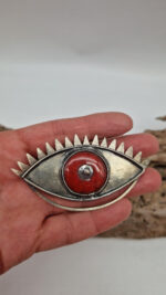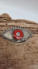 Duża, obłędna, metalowa brocha z alpaki, z ręcznie robioną ceramiką ; duże oko ,które przyciąga wzrok i nikt Ci się nie oprze…