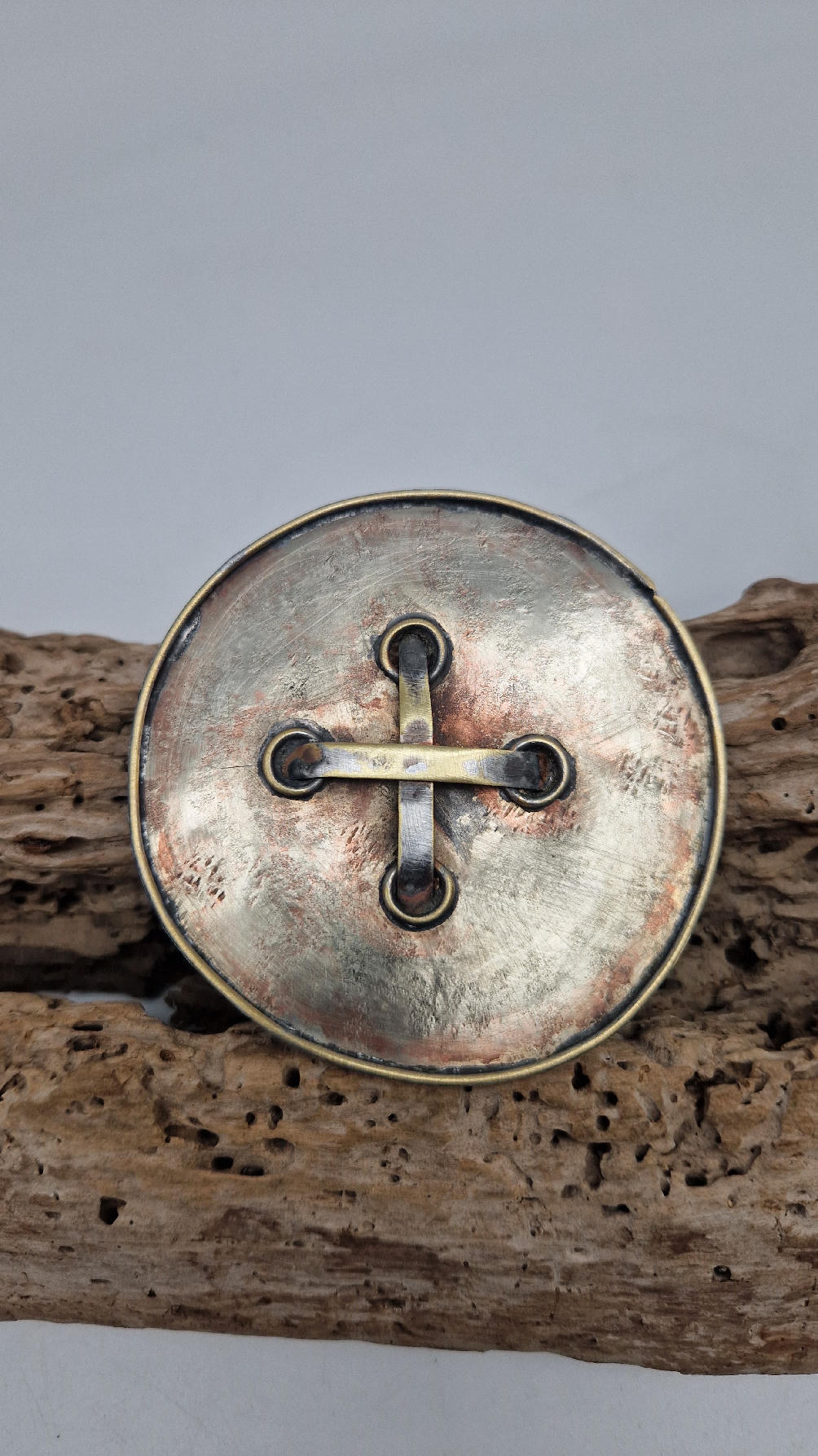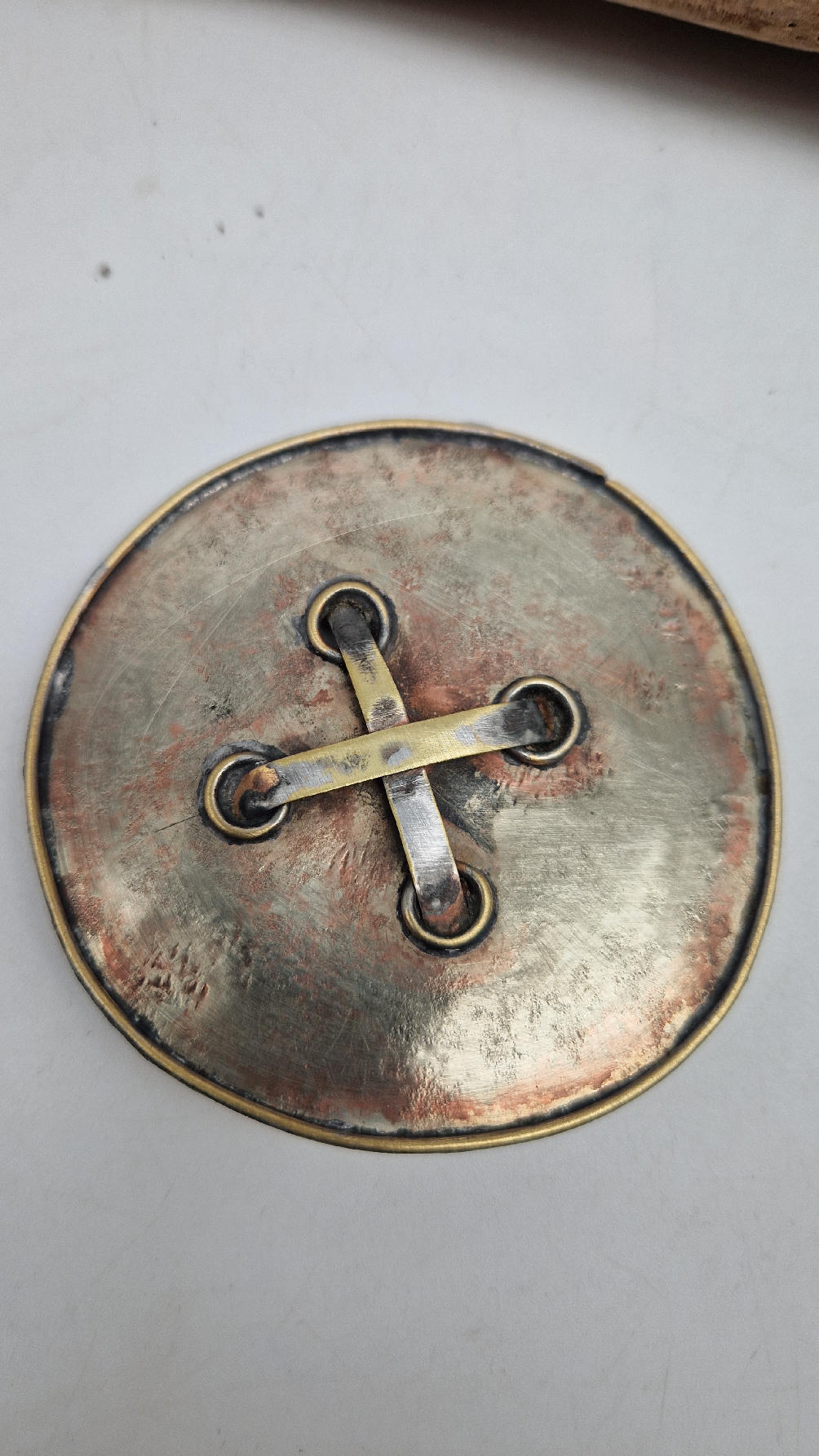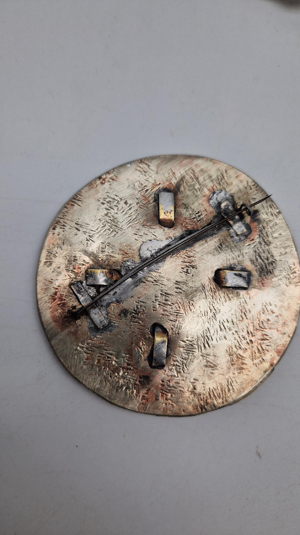 Brocha wykonana ręcznie z blachy alpakowej (alpaka tzw nowe srebro) i miedzi.