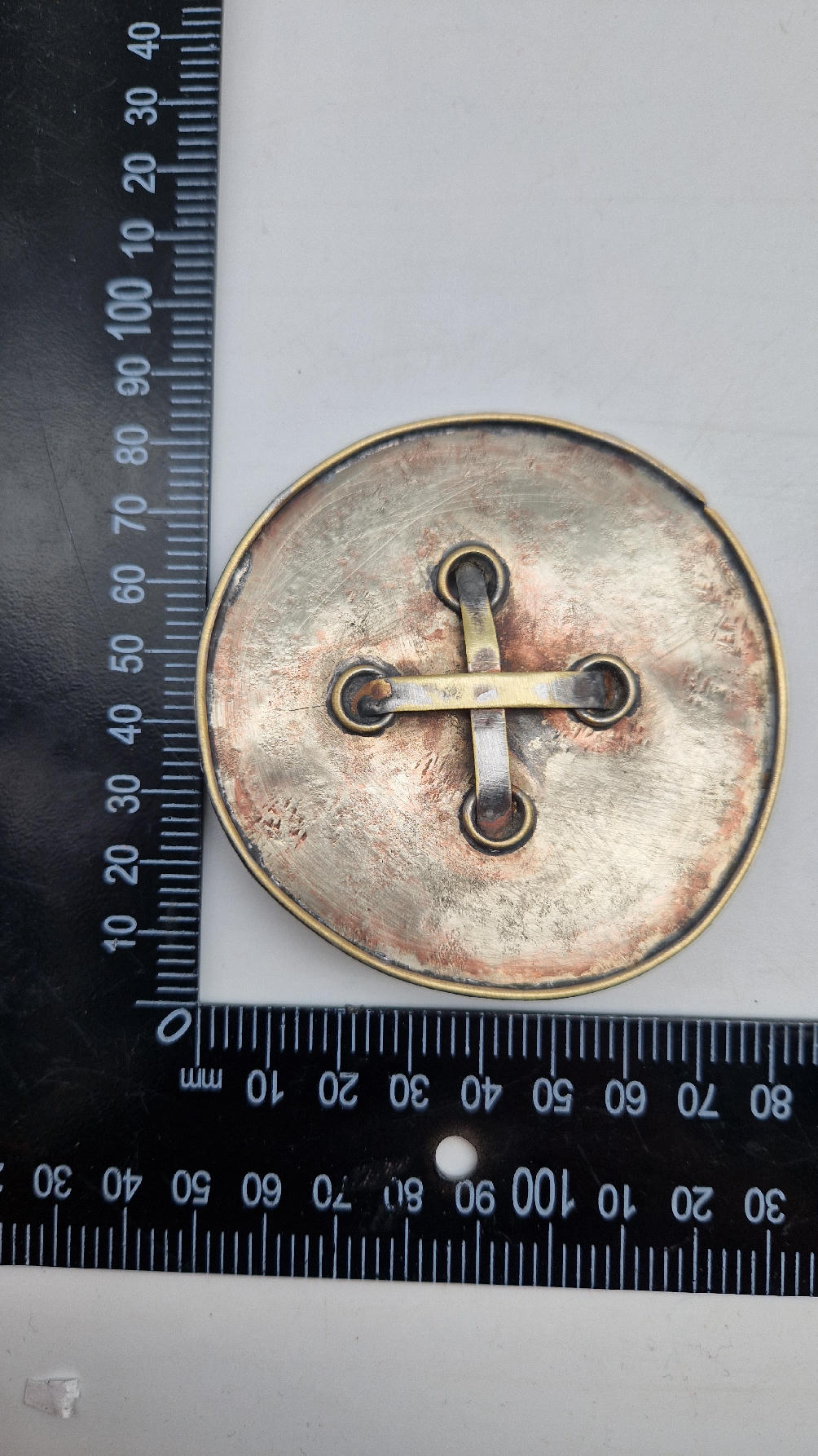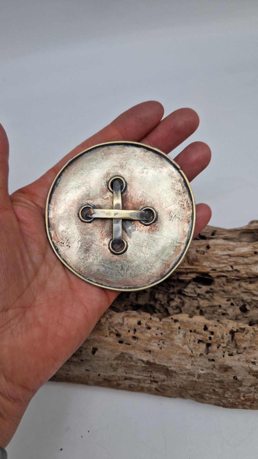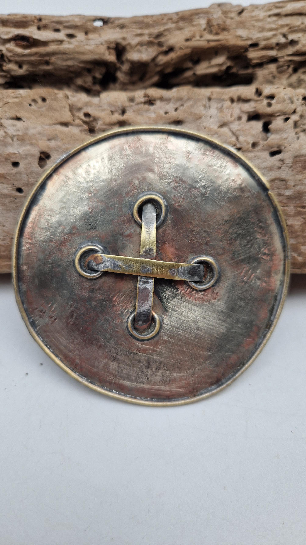 Brocha wykonana ręcznie z blachy alpakowej (alpaka tzw nowe srebro) i miedzi.