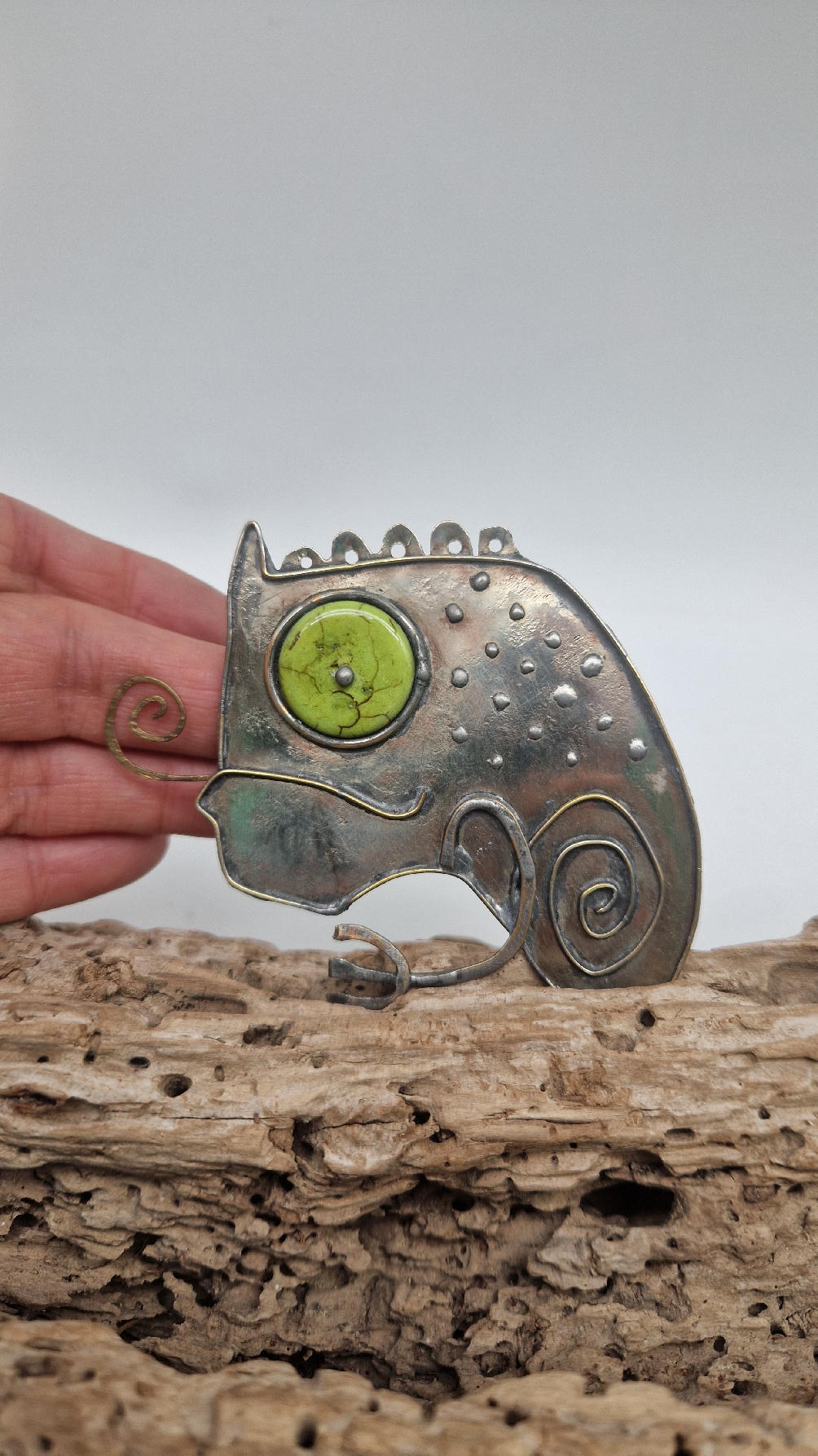 Cynowana, patynowana, malowana i lutowana ręcznie . Totalnie unikatowa, bo nawet jak ma siostrę, czy brata…. to i tak każda z nich jest inna.