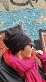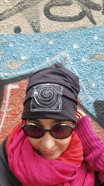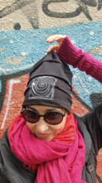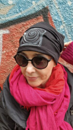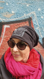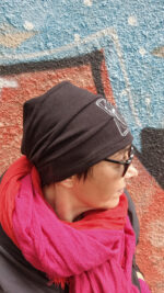 Czapka uszyta z czarnej bawełny z pętelką, taka cieńsza malowana ręcznie, taka inna niż inne, wielokrotnie poprzeszywana taka magiczna, niesamowita, sama zobaczysz na swojej głowie lub na głowie twojego mężczyzny…