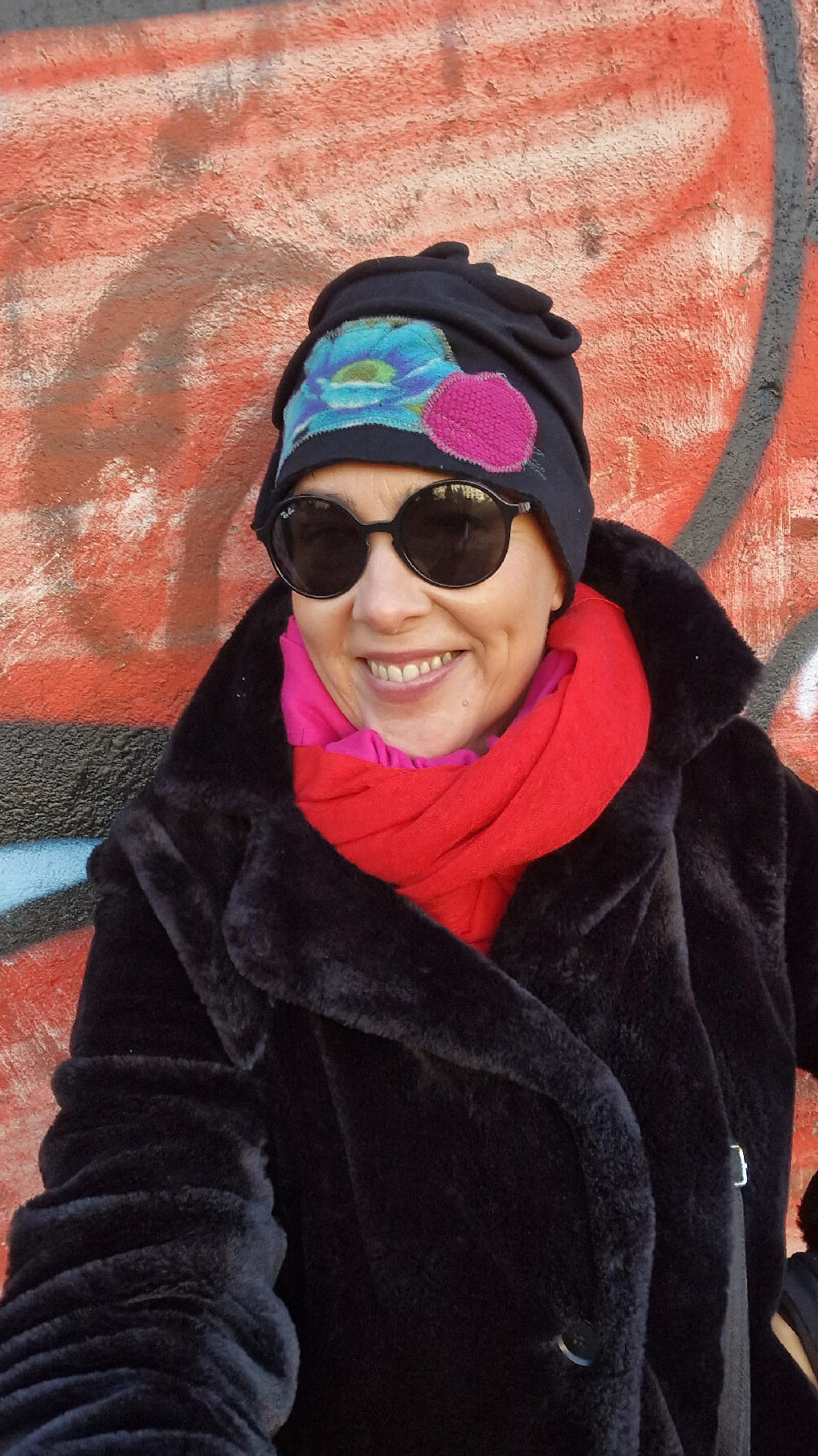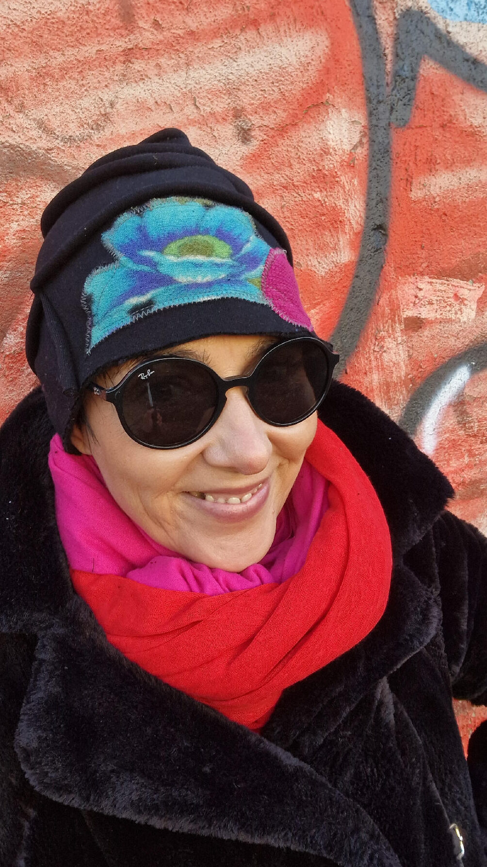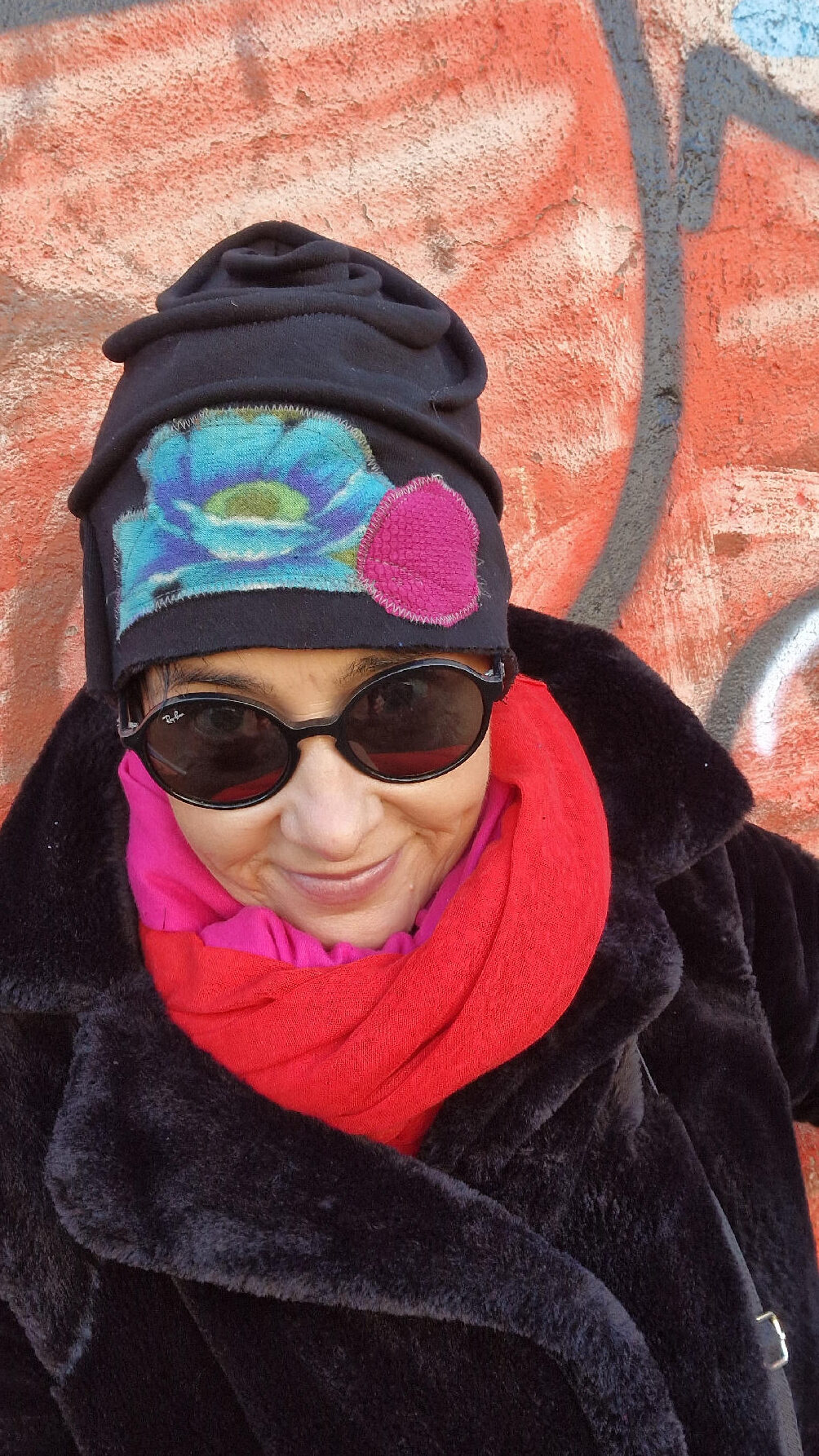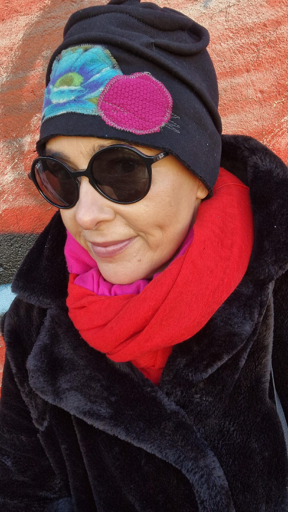 Uszyta z miękkiej, grubej, czarnej drapanej bawełny, jedna i niepowtarzalna, taka śliczna i kobieca… z dużym , pięknym kwiatem z przodu, albo z boku, jeśli wolisz…z ociupiną amarantu. Czapka śliczna