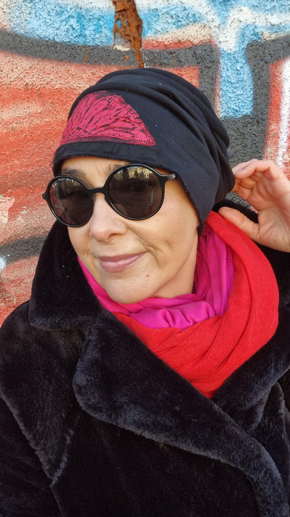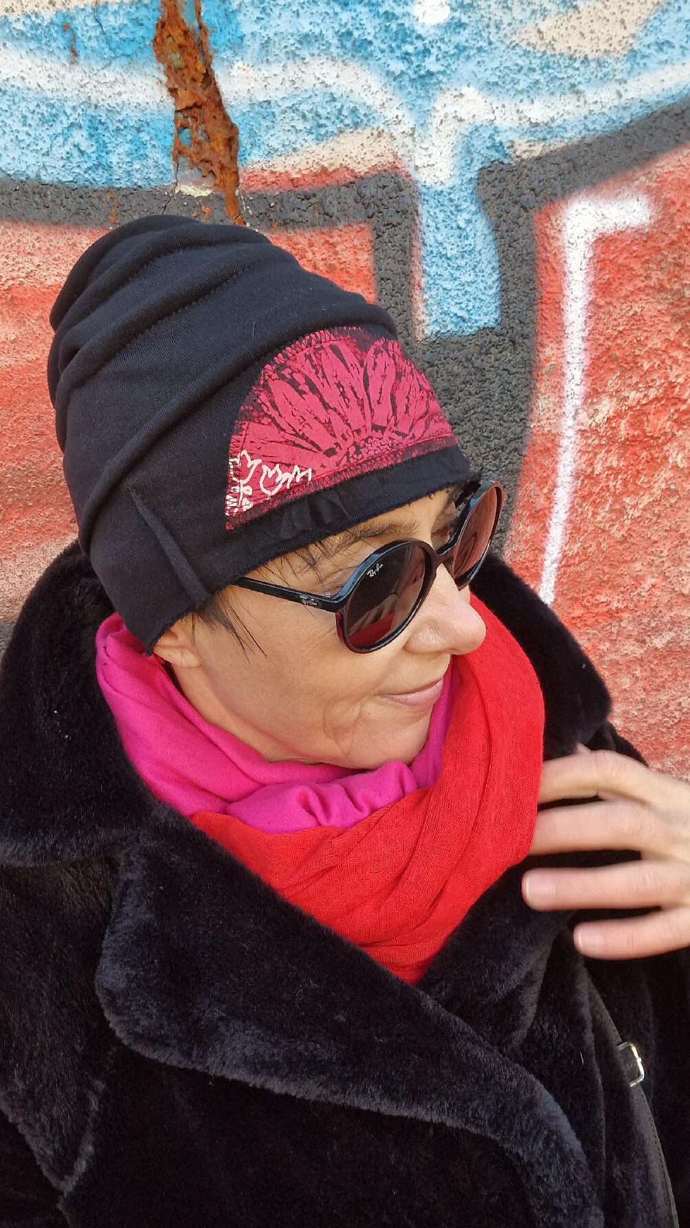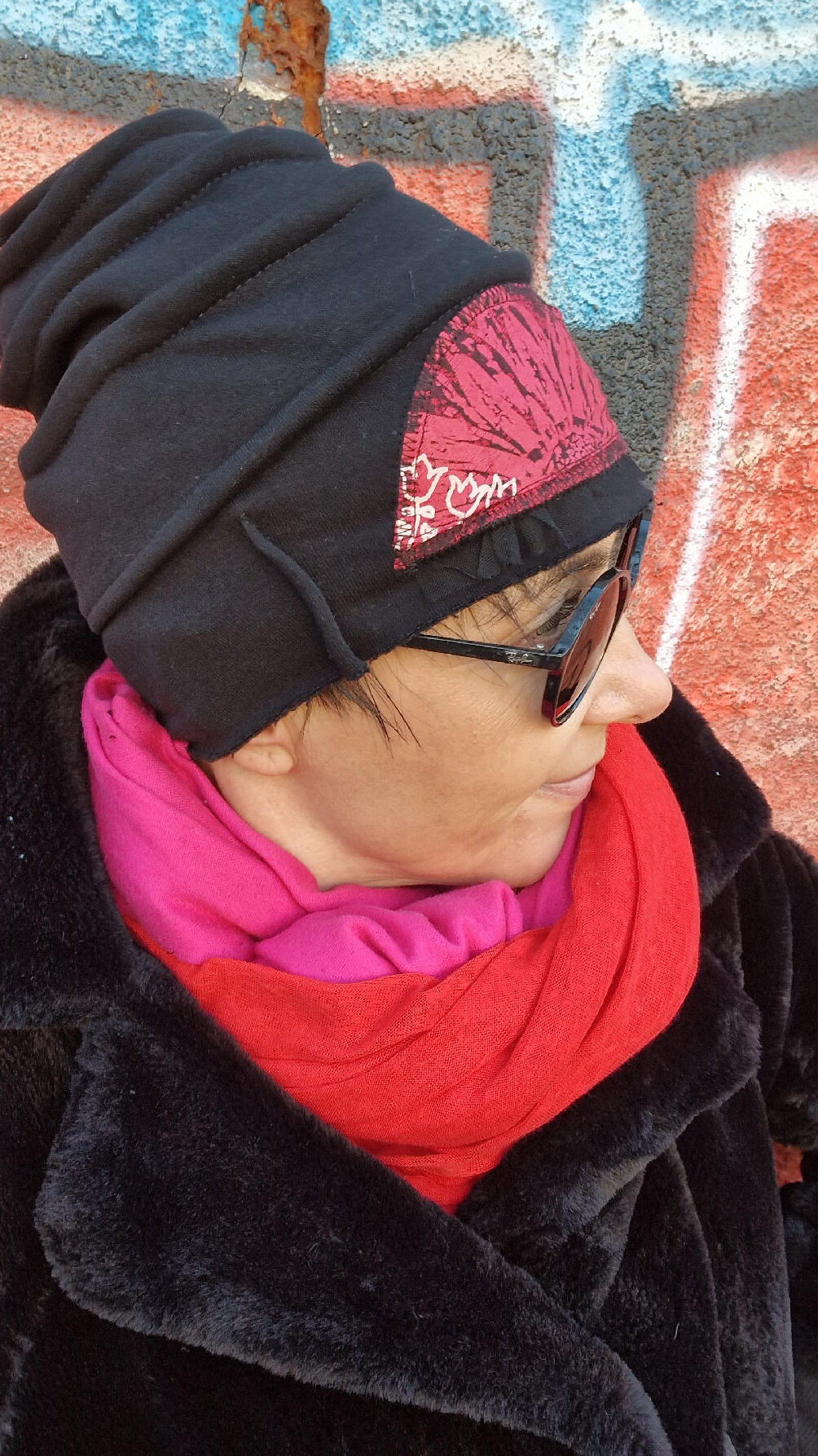 Świetnie pasują do niej szaliki… Amant-Amarant , Czerwona Czerwień