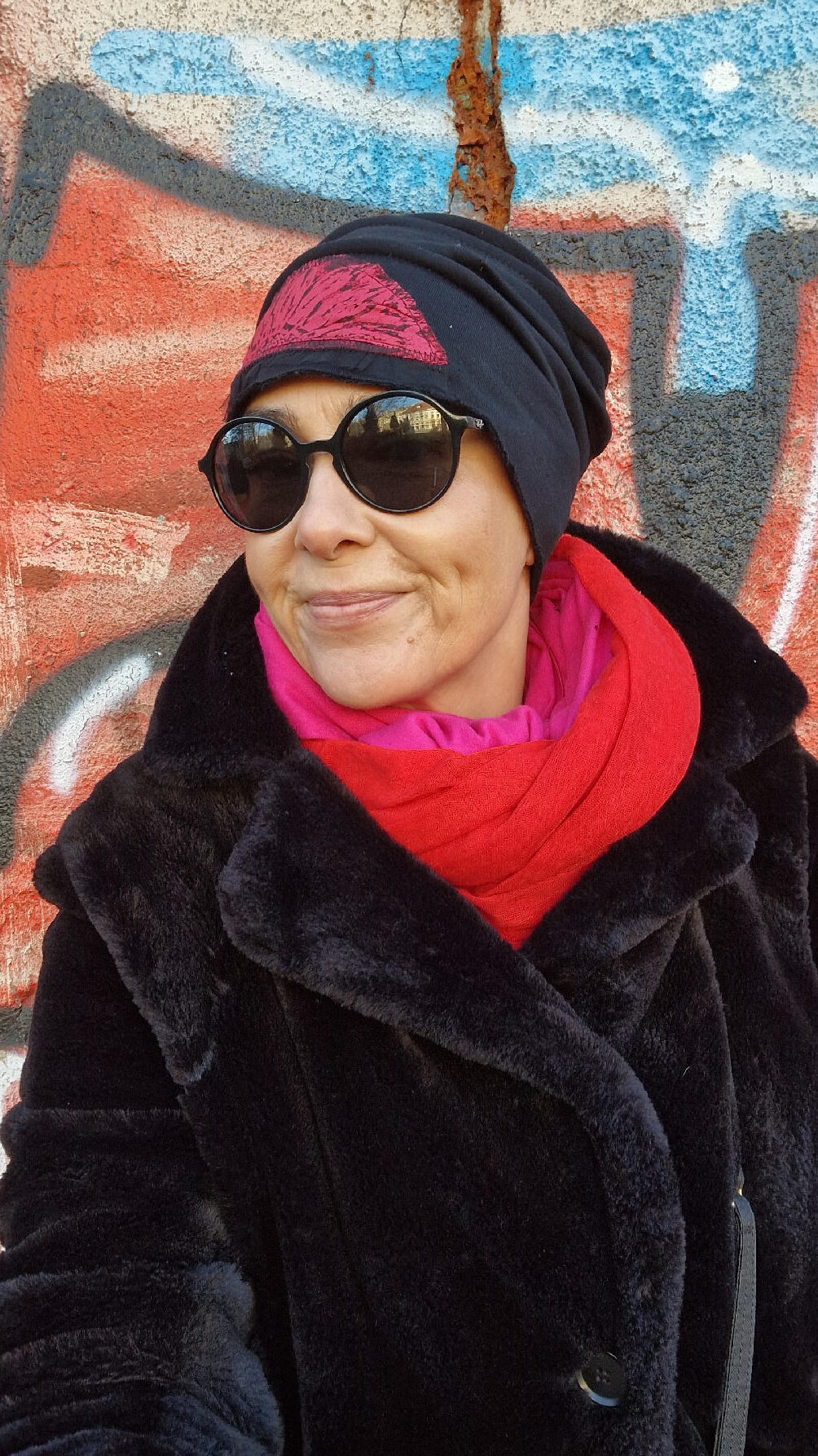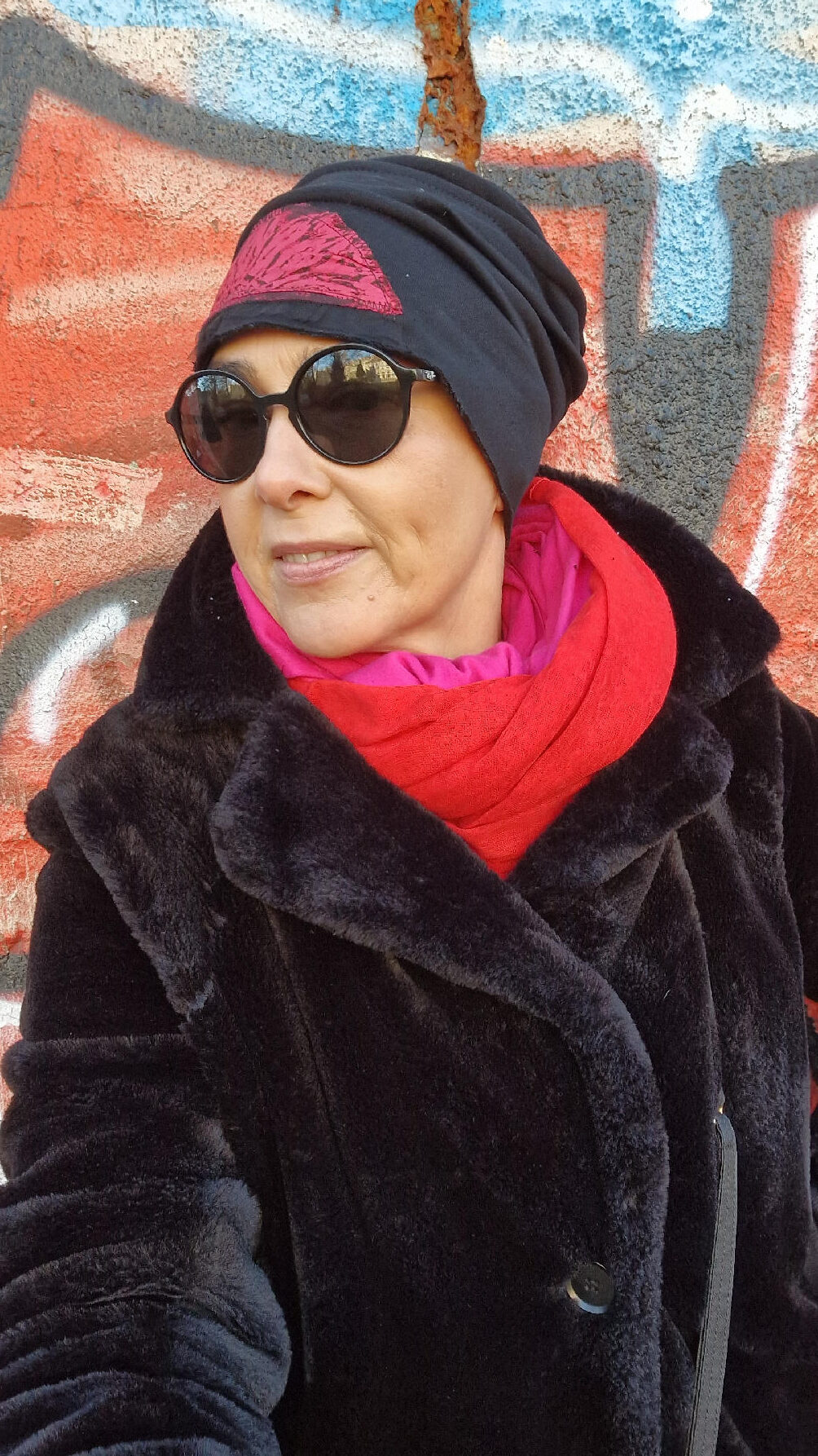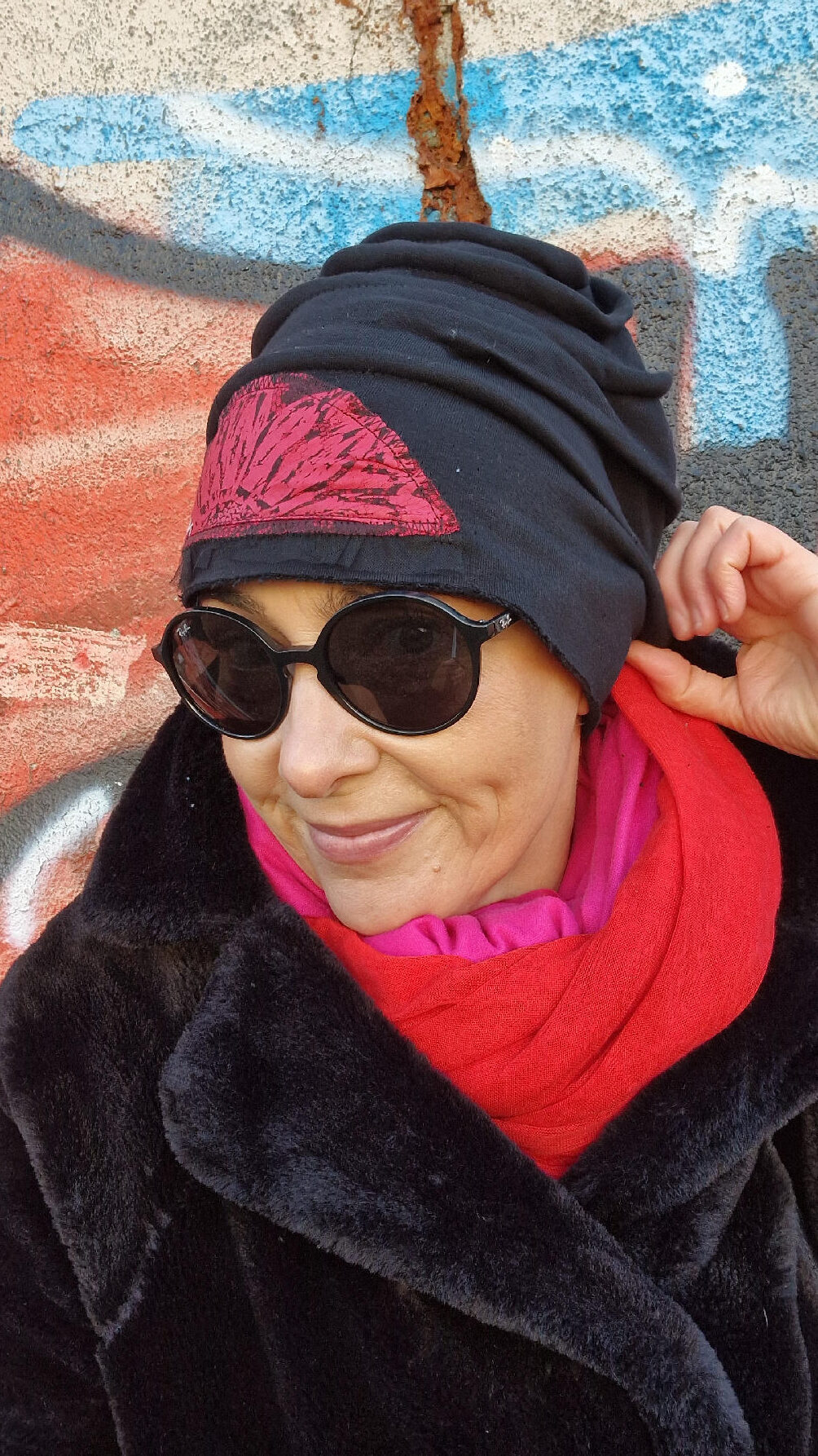 Świetnie pasują do niej szaliki… Amant-Amarant , Czerwona Czerwień