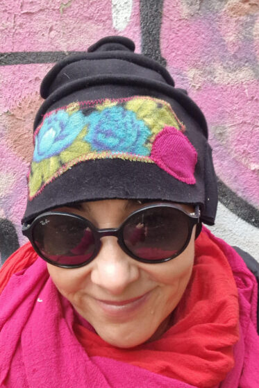 Uszyta z miękkiej, grubej ,czarnej, drapanej bawełny, jedna i niepowtarzalna, z unikatową aplikacją z przodu, albo z boku, jeśli wolisz…kratka, przeszycia…