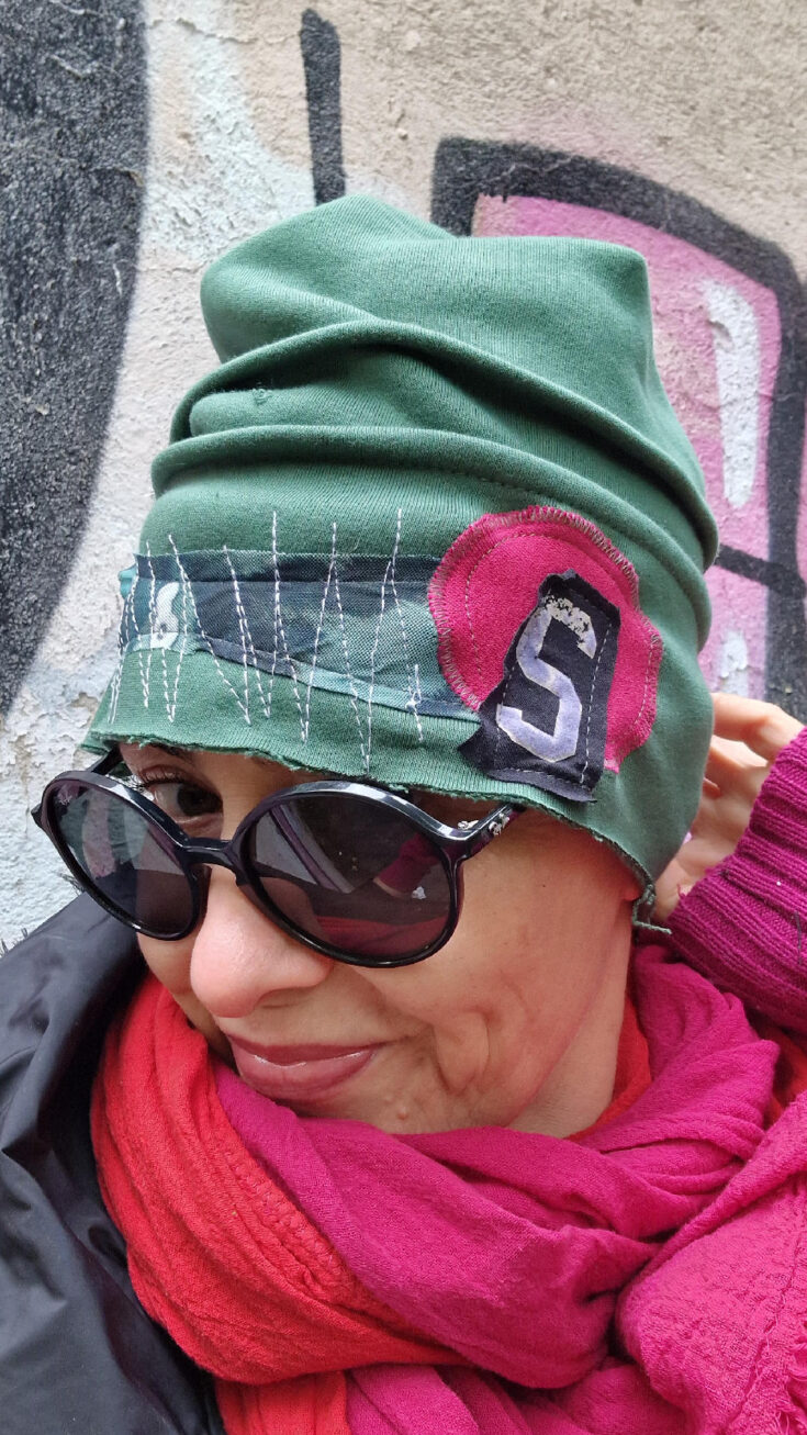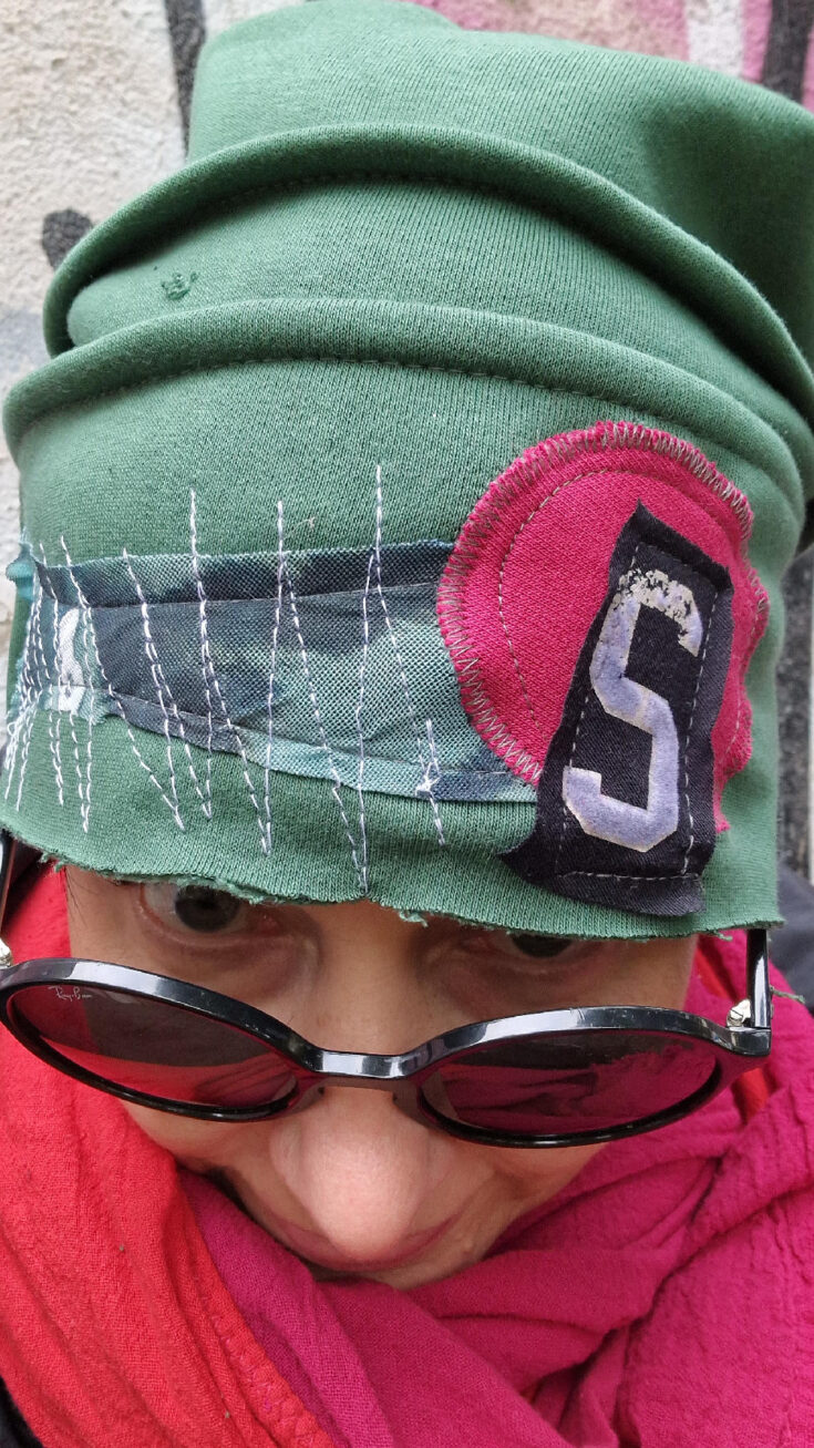 Uszyta z miękkiej, grubej, zielonej, drapanej bawełny…jedna i niepowtarzalna, z unikatową aplikacją z przodu, albo z boku, jeśli wolisz…