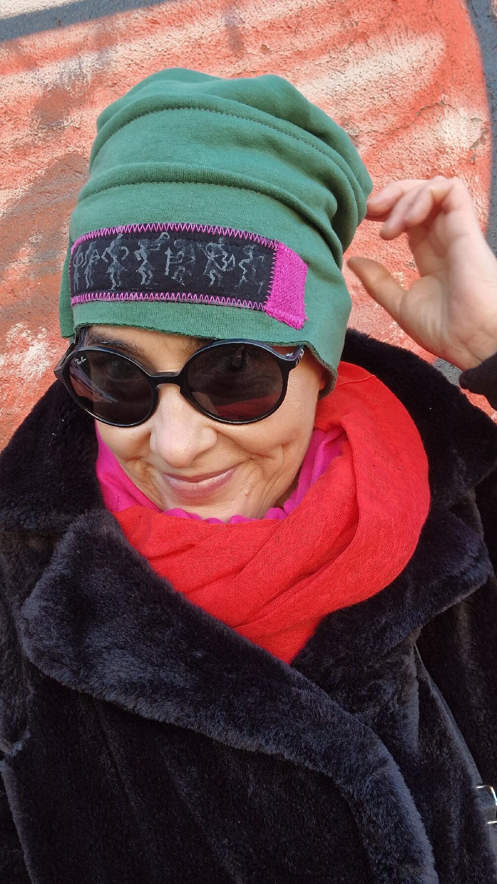 Czapka jest  przestrzenna, jak Zuzanny, architektoniczna, niegniecąca włosów.