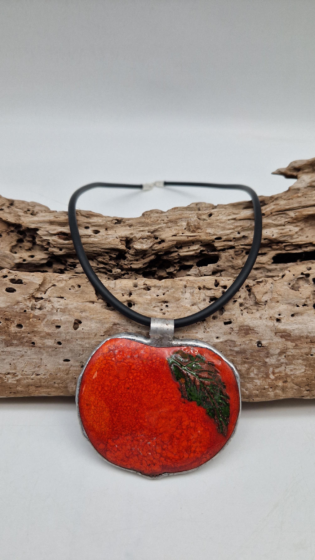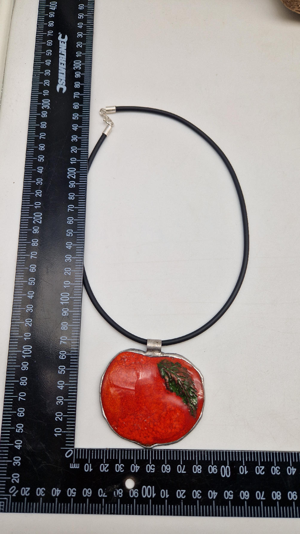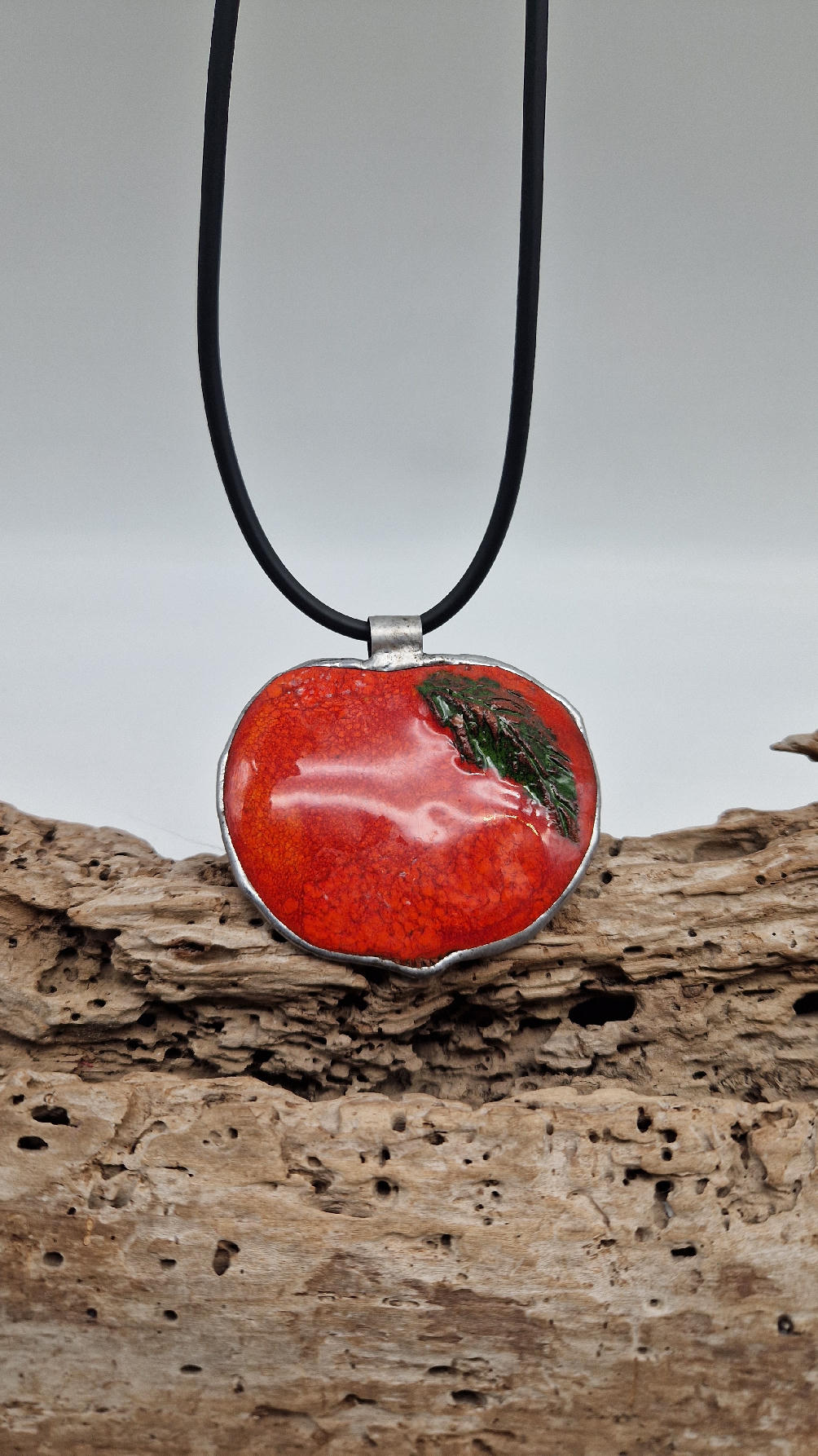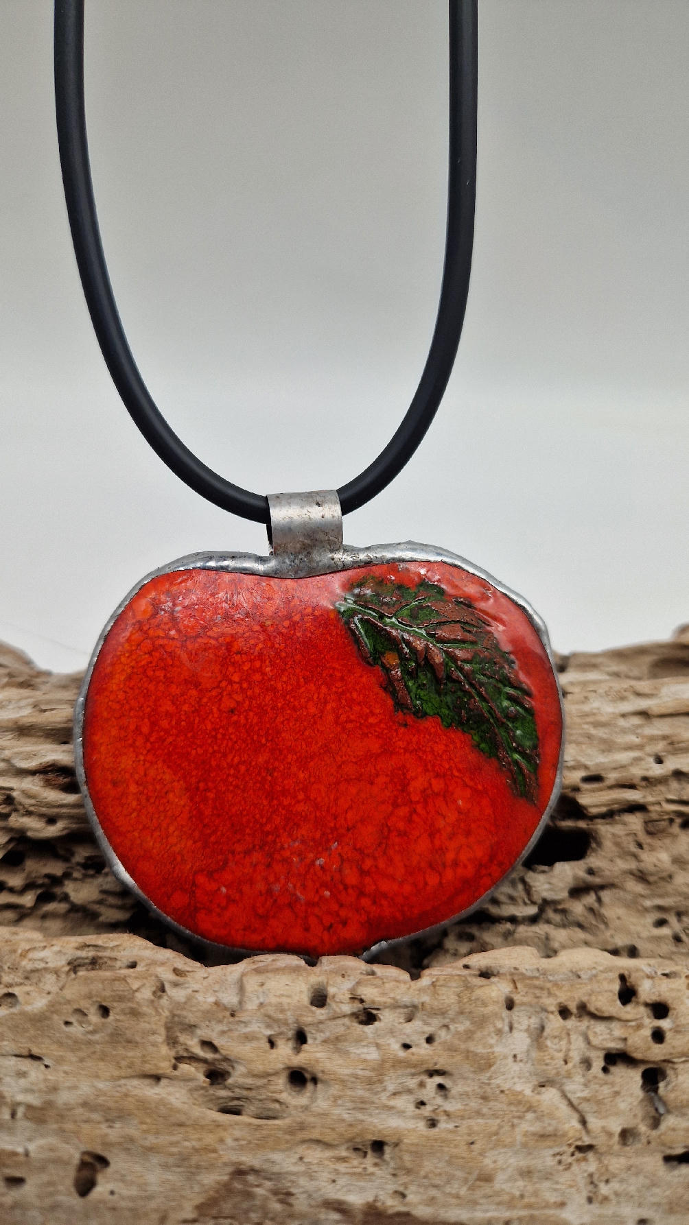 Cudny, ceramiczny nieduży wisior, ogniście soczyste, czerwone, śliczne jabłko, ceramika oprawiona w metal, cudna płaskorzeźba, która będzie piękną dekoracją Twojego dekoltu.