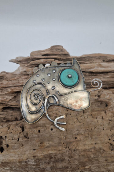 Brocha wykonana ręcznie z blachy alpakowej (alpaka tzw nowe srebro) i miedzi.