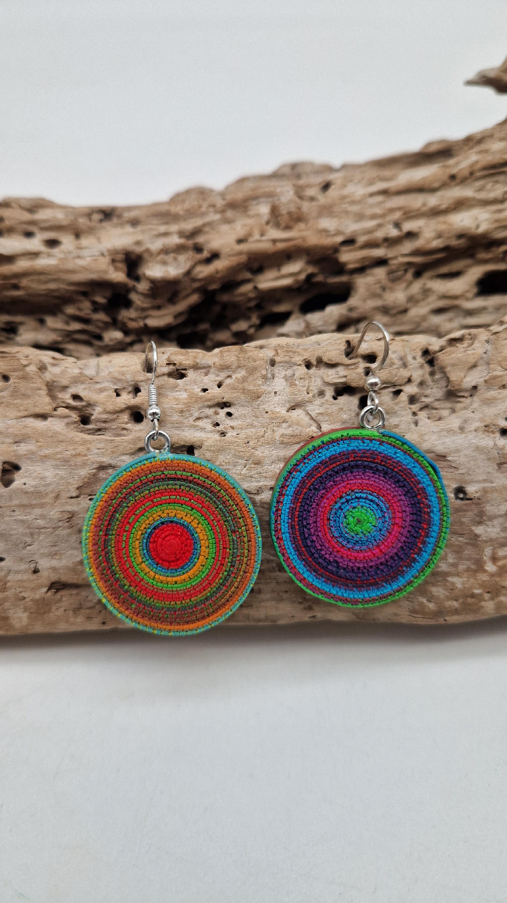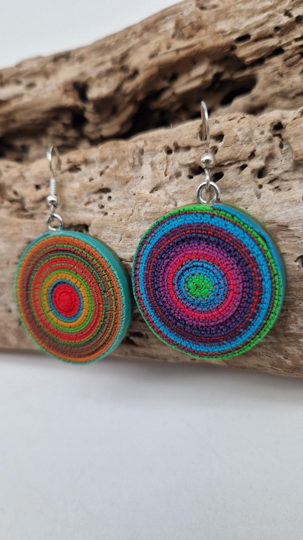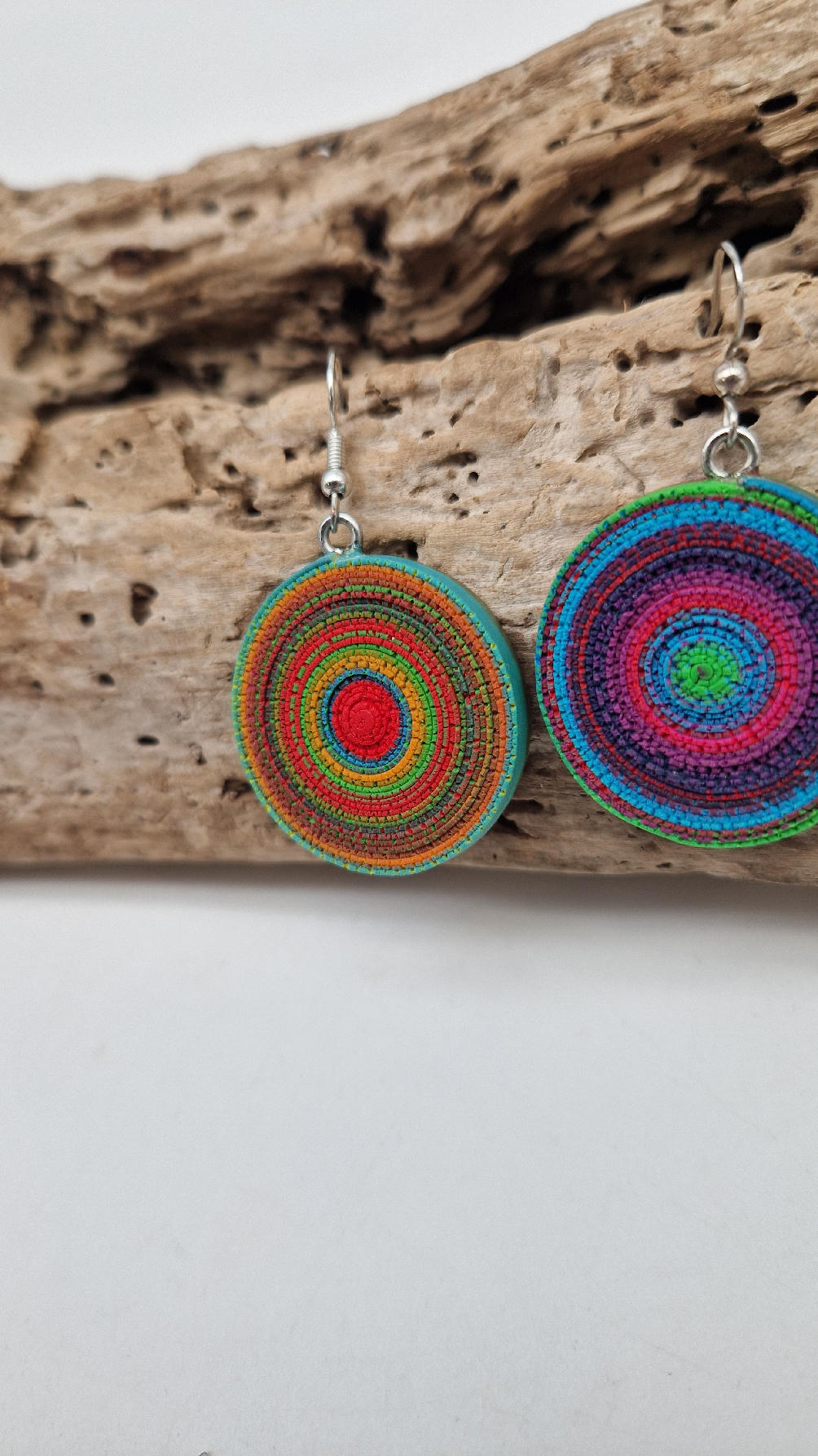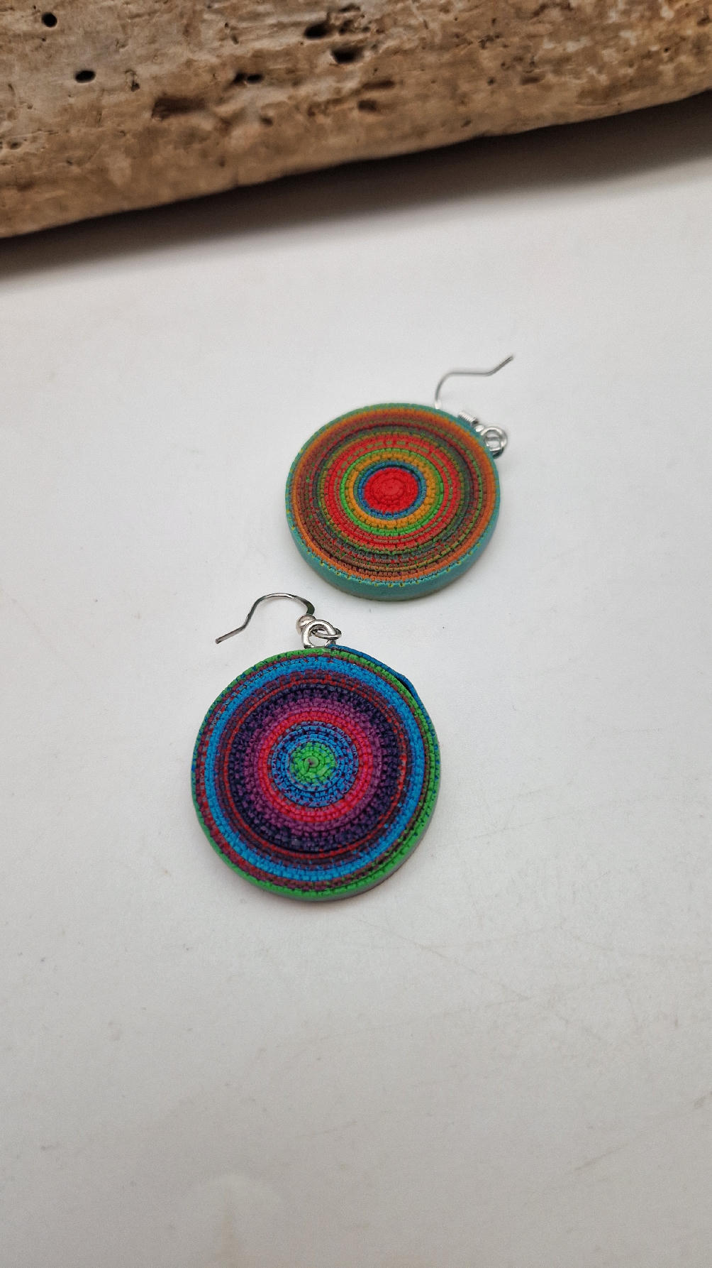 Bardzo piękne, megakolorowe, obłędnie ozdobne, superlekkie, okrągłe kolczyki idealne na pochmurne dni . Zrobione z termoutwardzalnych mas w zwariowanych, pięknie dopasowanych kolorach.