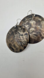 Piękne , uniwersalne kolczyki wykonane z alpaki, kute i patynowane. Czarne, ciut, ciut złote…. niebanalne, duże ale bardzo lekkie. Kolczyki mają średnicę 5,5 cm
