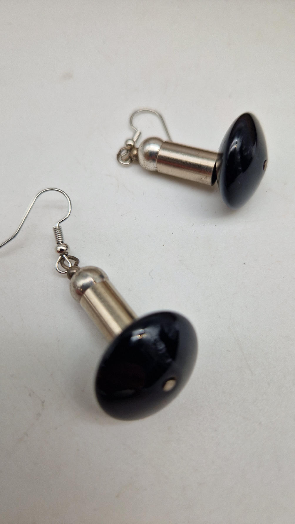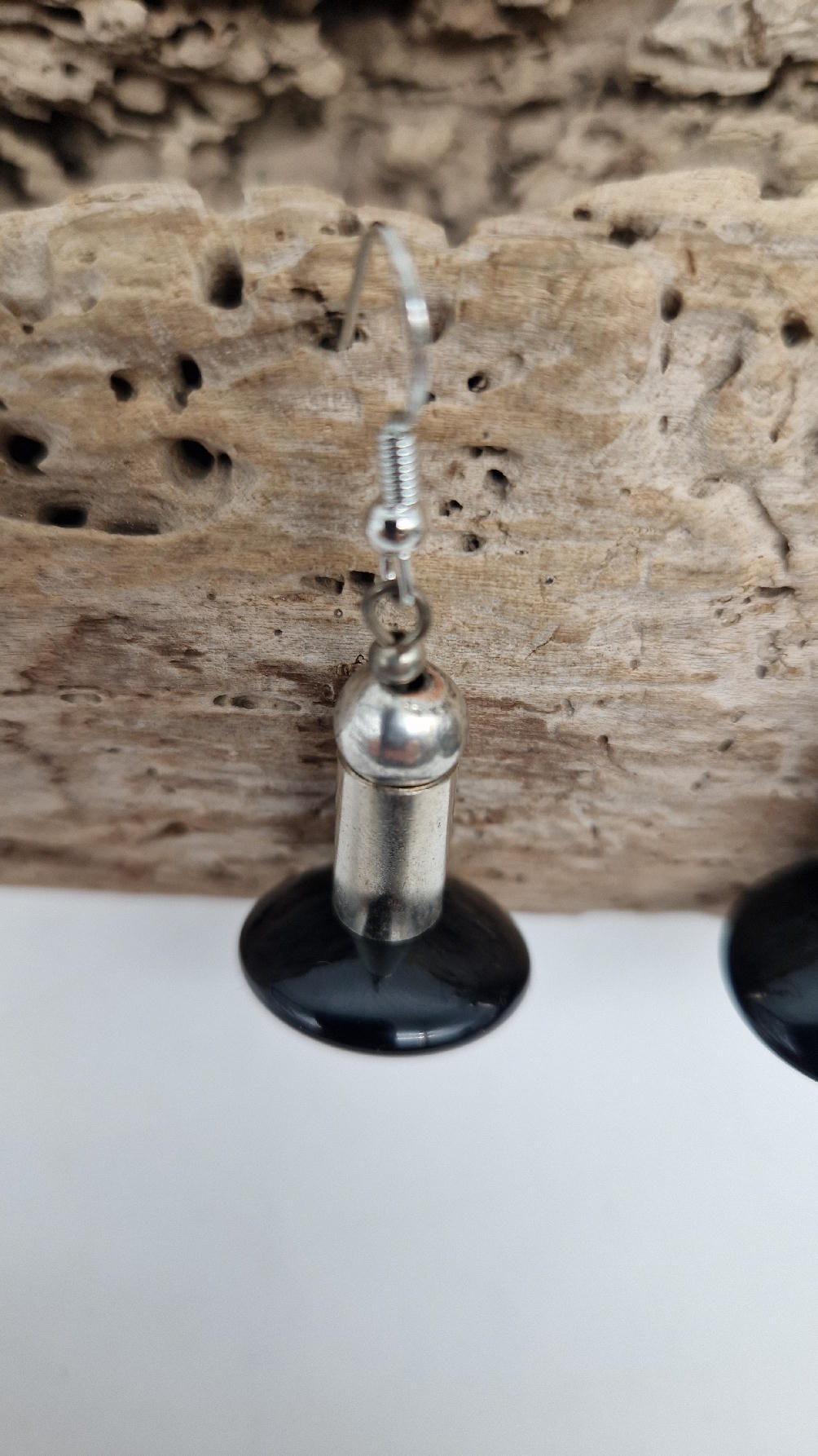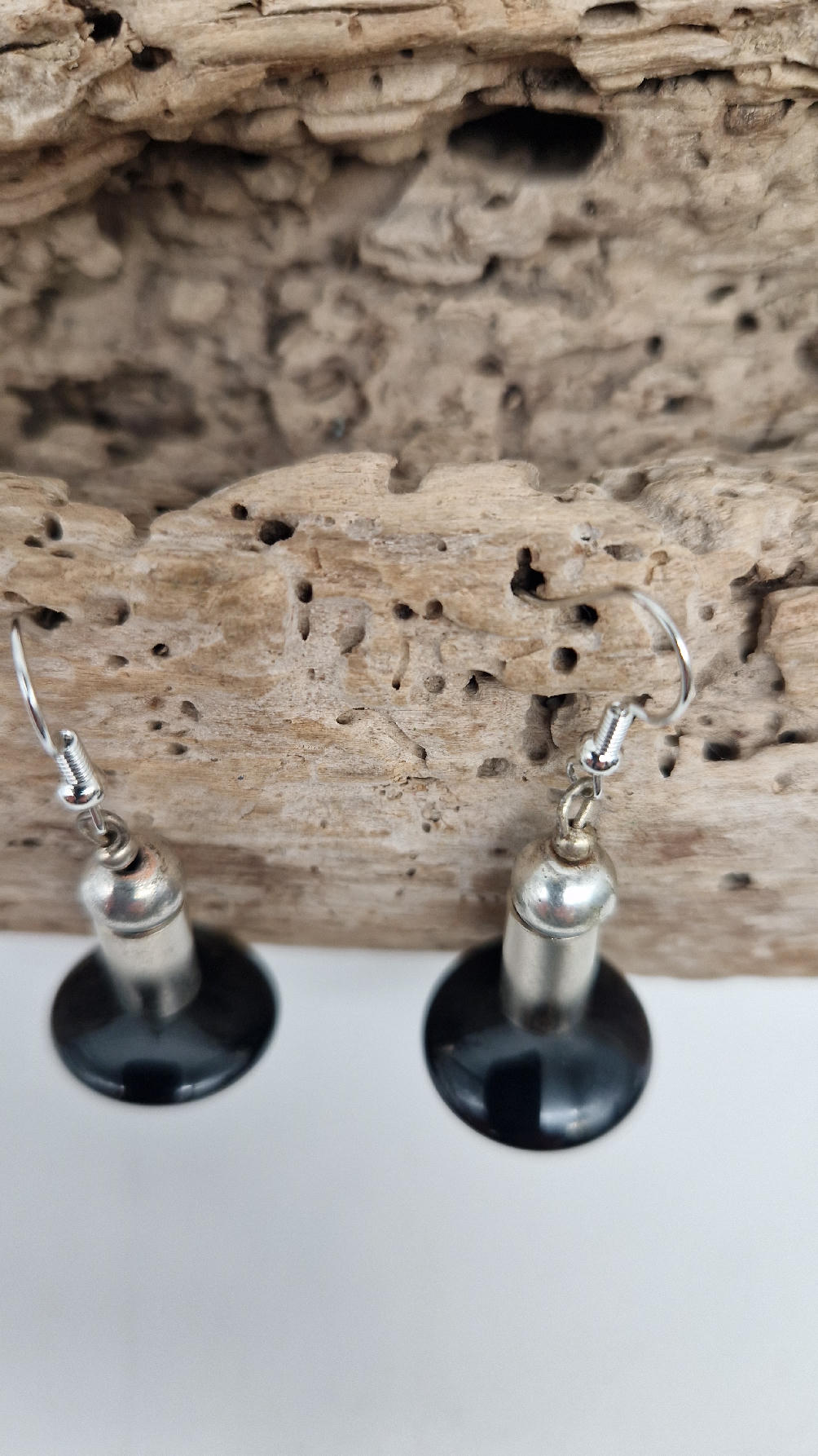 Niewielkie czarne kolczyki wykonane z onyksów i srebrzonych elementów. Proste, uniwersalne, niebanalne.