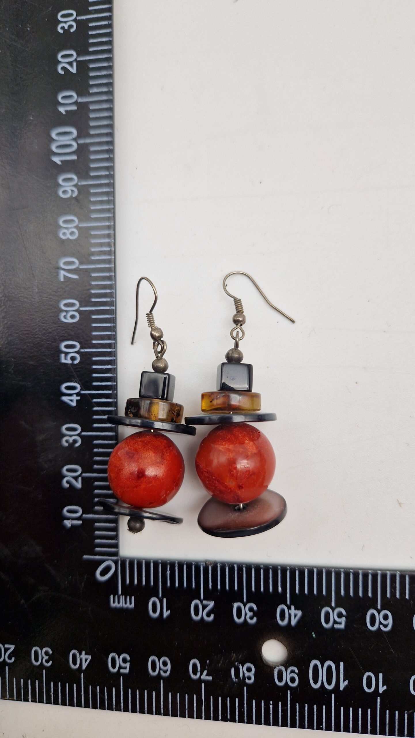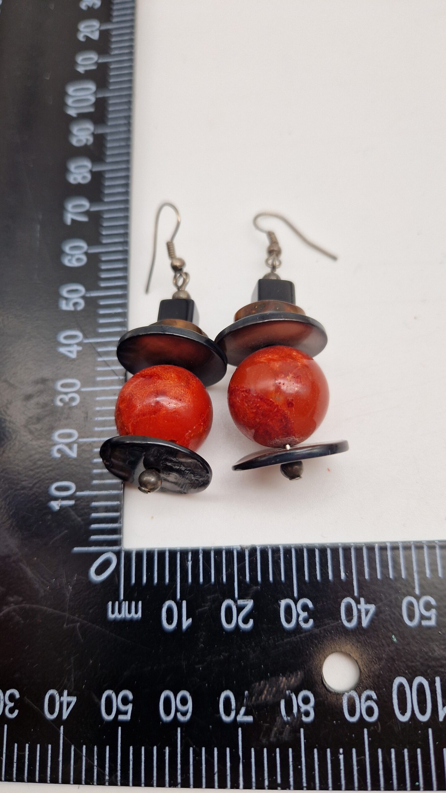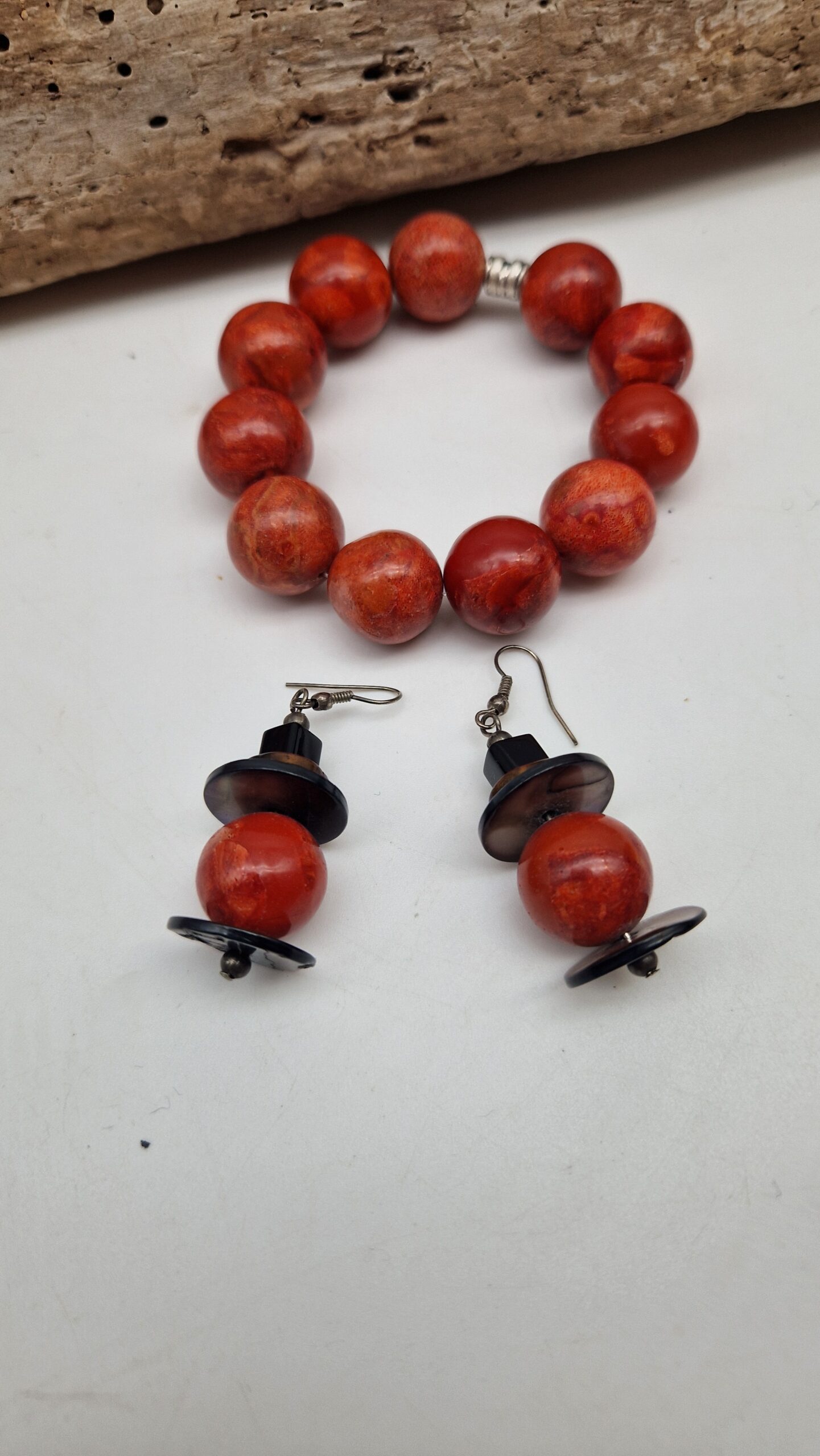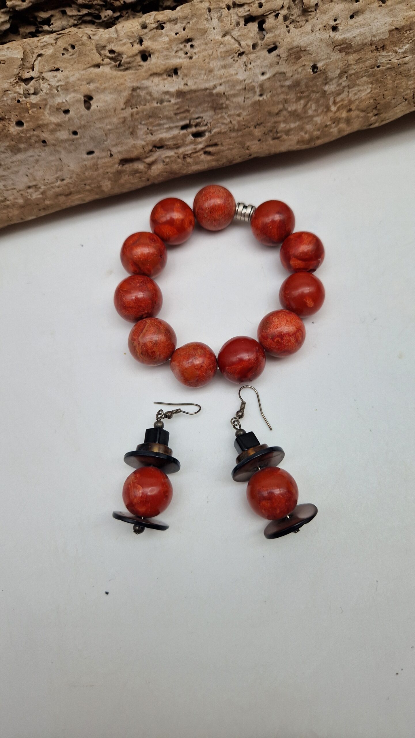 Niewielkie kolczyki wykonane z korala, bursztynu, muszli i lawy. Śliczne, oryginalne, niebanalne, mogą być pięknym uzupełnieniem bransolety z korala…