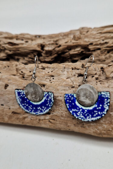Kolczyki te są w kształcie koła, co dodaje im uroku i sprawia, że są bardzo oryginalne. Każdy egzemplarz jest pojedynczy, co sprawia, że są bardzo unikatowe i niepowtarzalne.