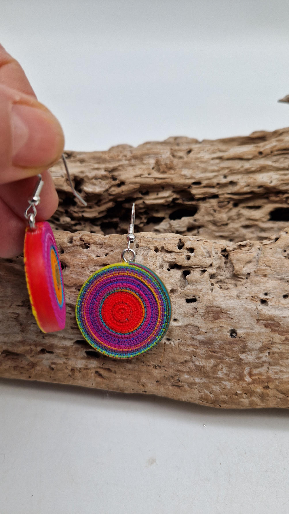 Bardzo piękne, megakolorowe, obłędnie ozdobne, superlekkie, okrągłe kolczyki idealne na pochmurne dni . Zrobione z termoutwardzalnych mas w zwariowanych, pięknie dopasowanych kolorach.