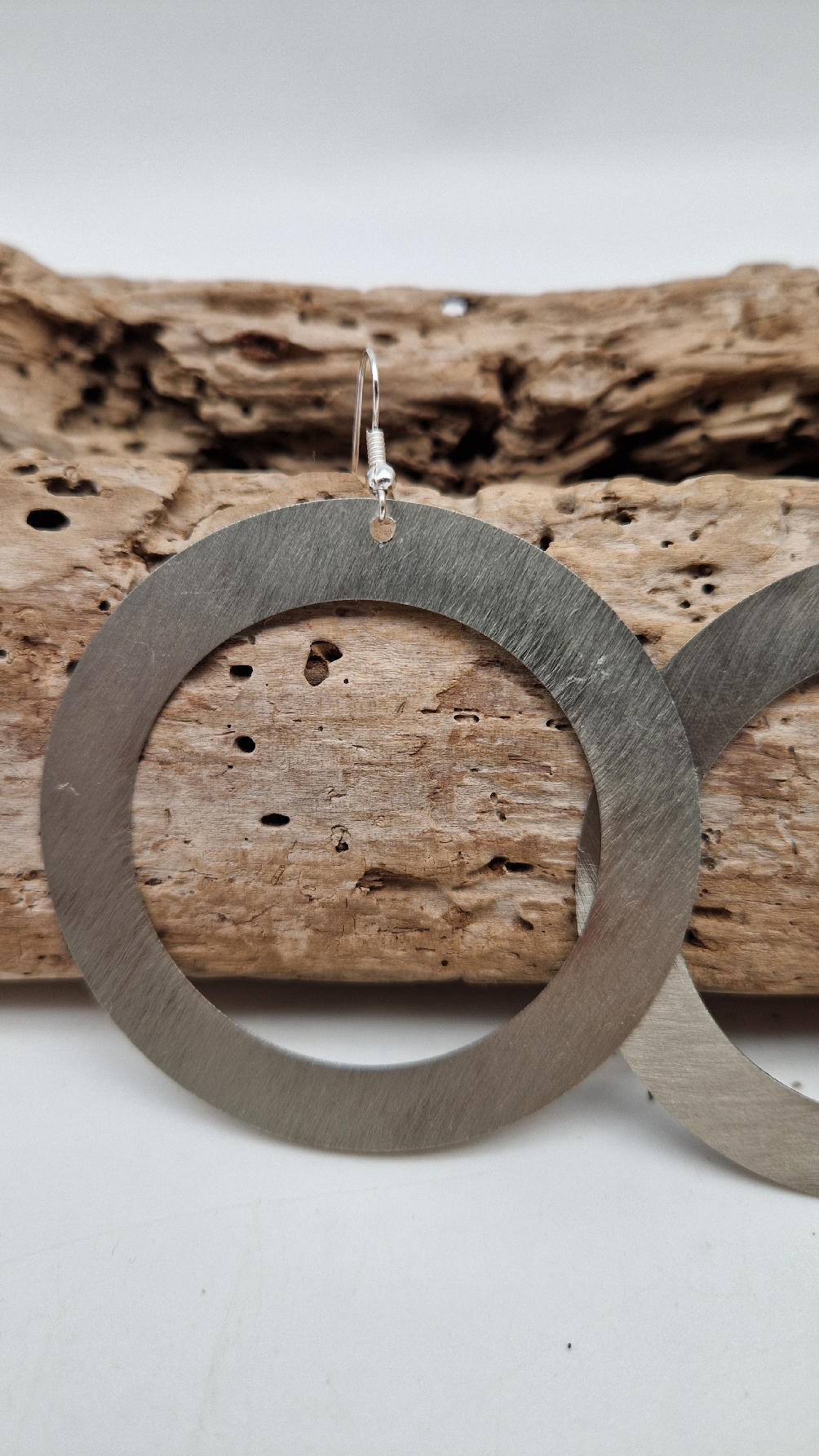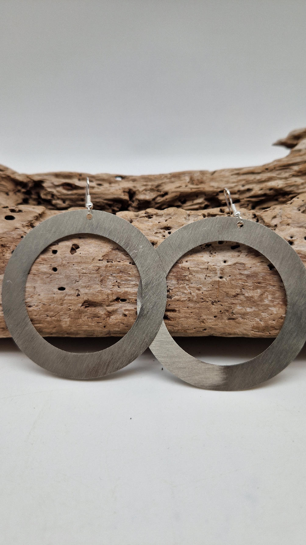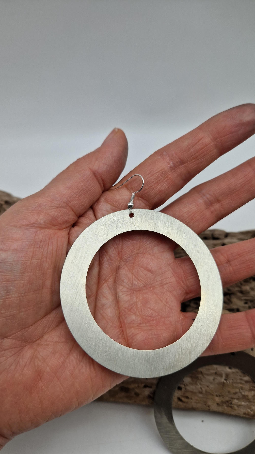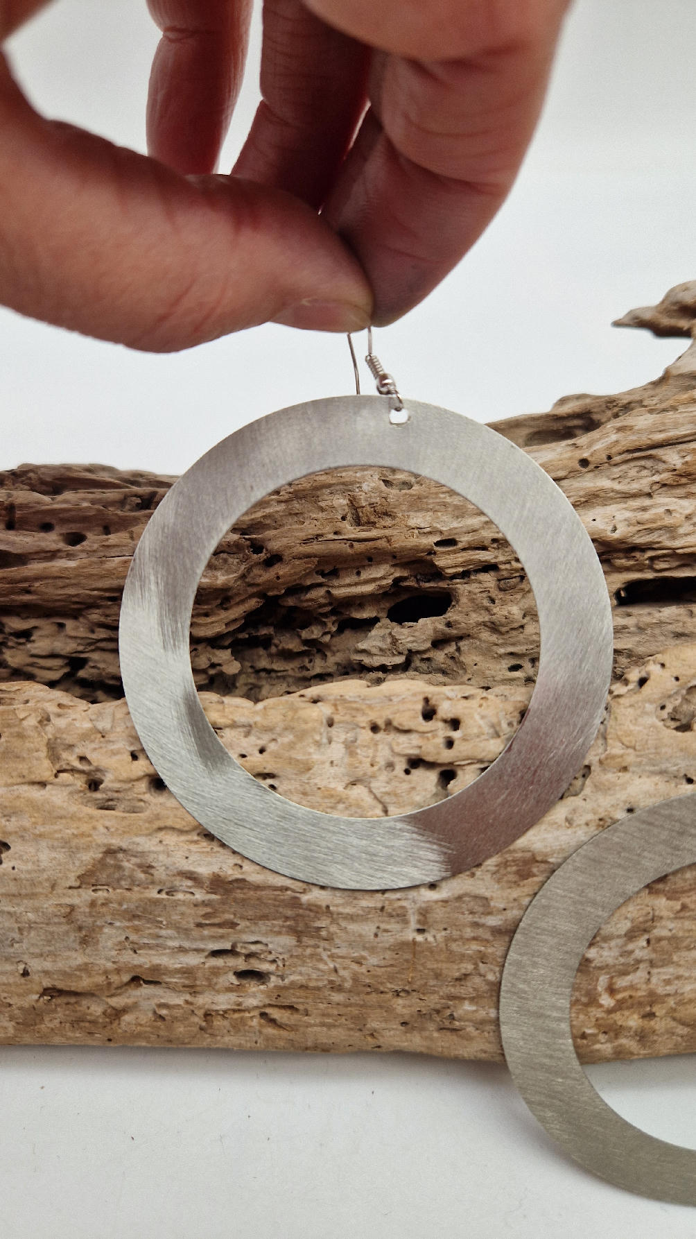 Duże, ale bardzo lekkie kolczyki, takie pasujące do wszystkiego, uniwersalne zrobione z alpaki, lekko szczotkowane, dzięki czemu mają lekka fakturę … lekkie, pomimo swojej sporej wielkości…