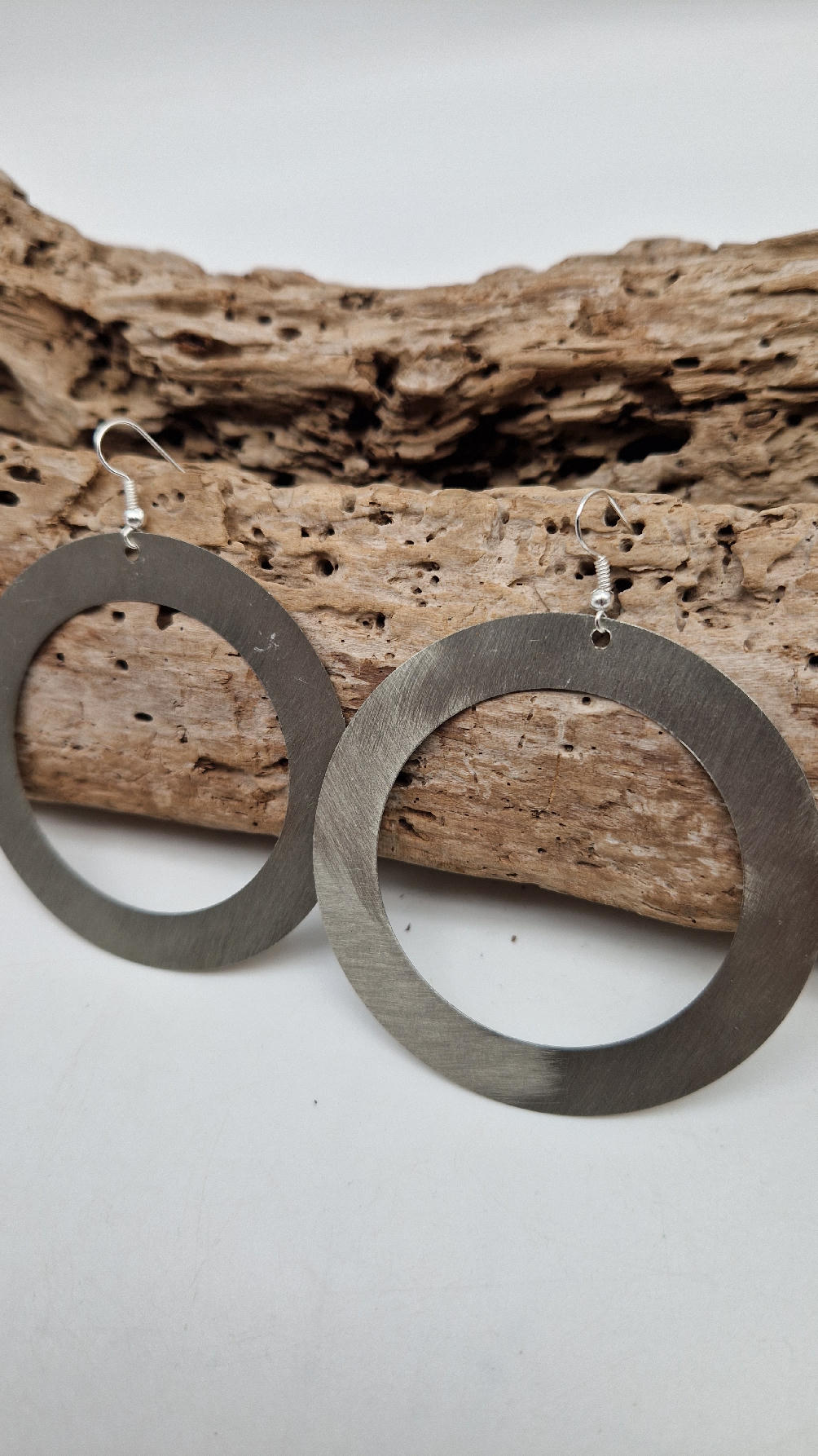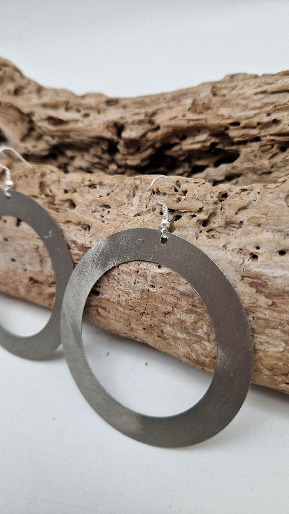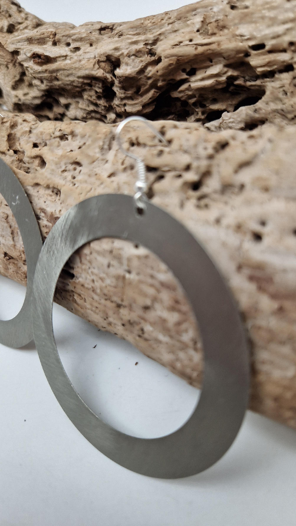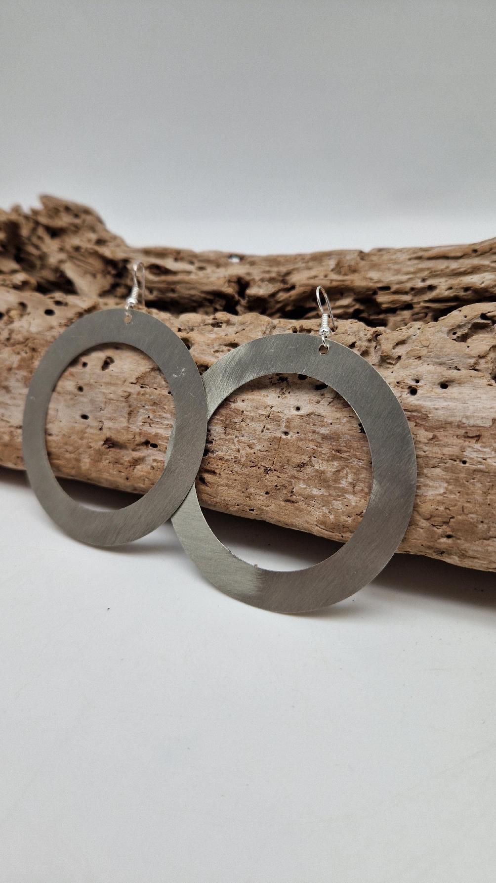 Duże, ale bardzo lekkie kolczyki, takie pasujące do wszystkiego, uniwersalne zrobione z alpaki, lekko szczotkowane, dzięki czemu mają lekka fakturę … lekkie, pomimo swojej sporej wielkości…
