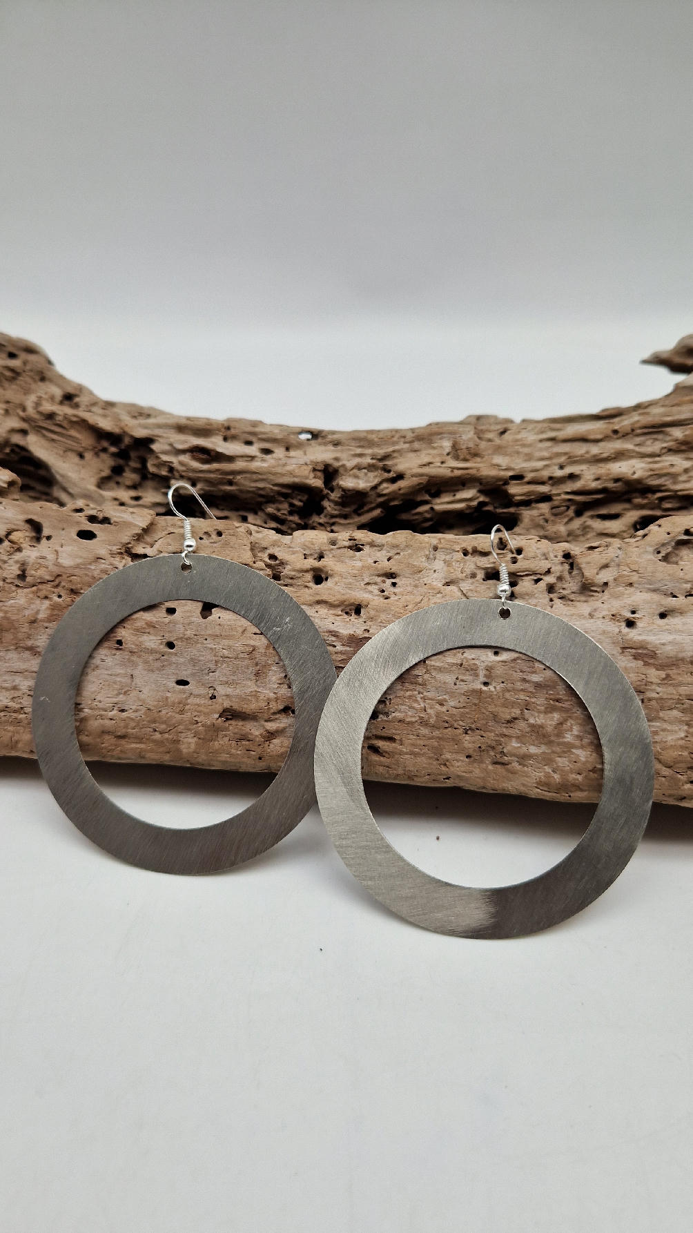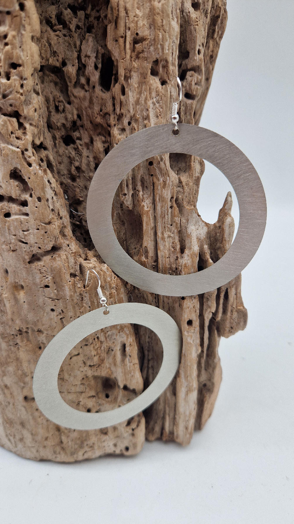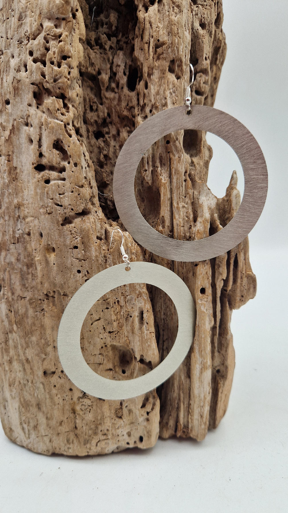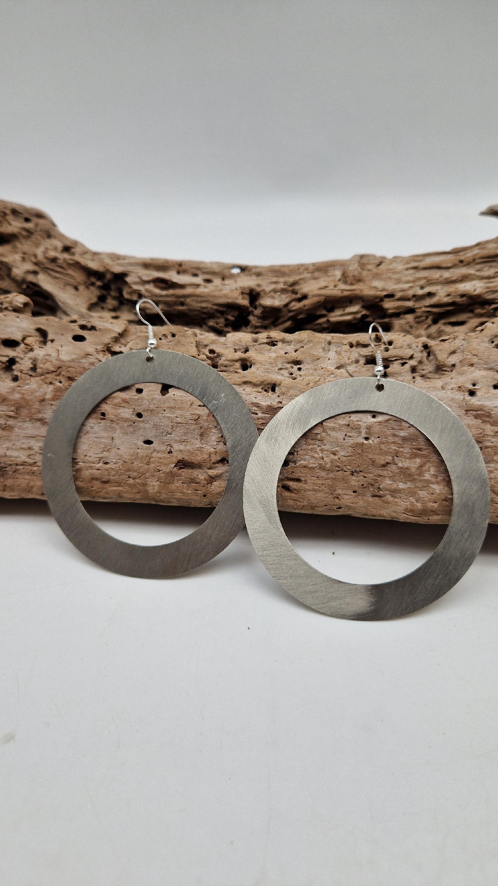Duże, ale bardzo lekkie kolczyki, takie pasujące do wszystkiego, uniwersalne zrobione z alpaki, lekko szczotkowane, dzięki czemu mają lekka fakturę … lekkie, pomimo swojej sporej wielkości…