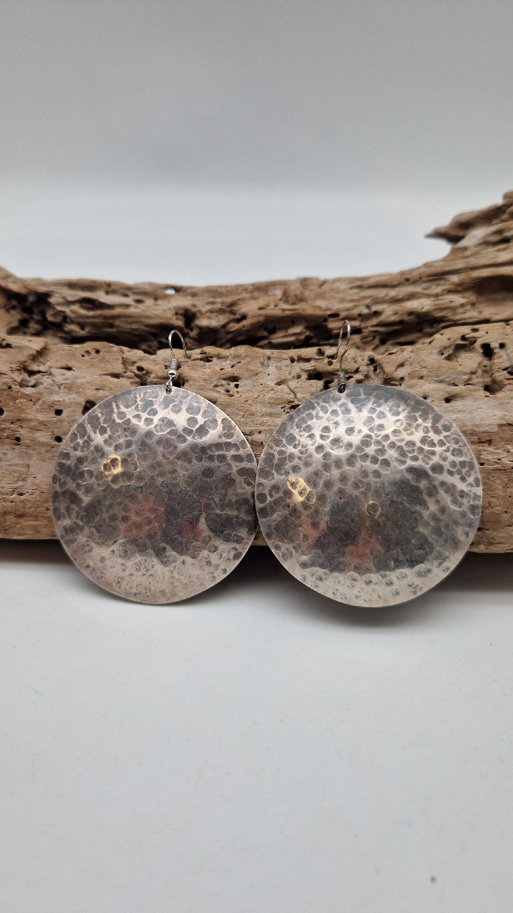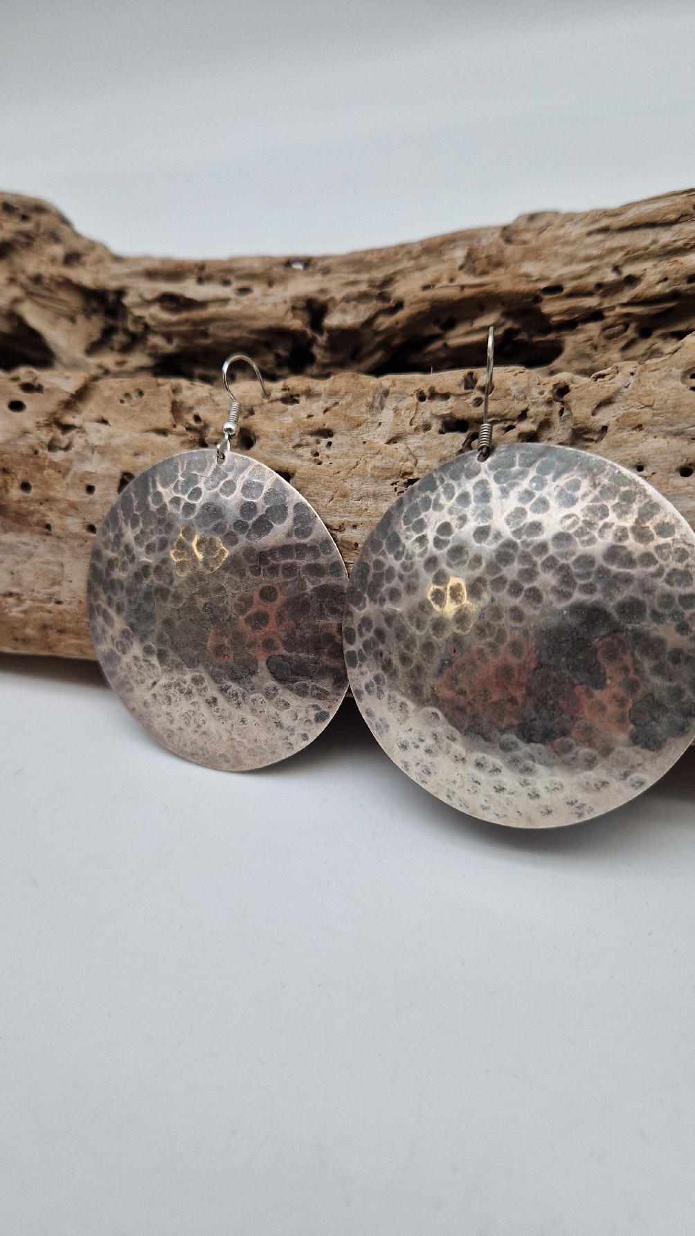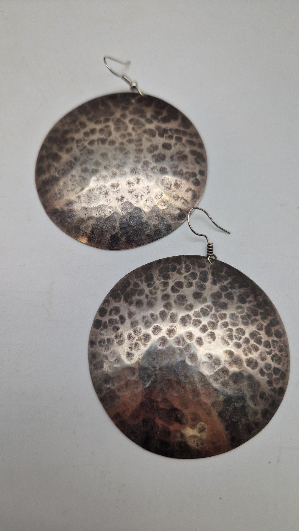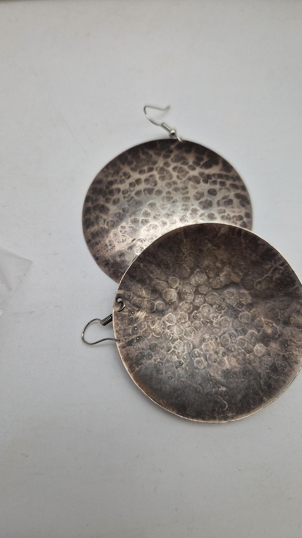 Jedne z tych moich ulubionych, duże , okrągłe kolczyki….noszę je bardzo często… zrobione z miedzi i srebrzone… kute, patynowane na czarno, przestrzenne, niebanalne, tajemnicze , takie wyjątkowe, ale do wszystkiego, cudne!