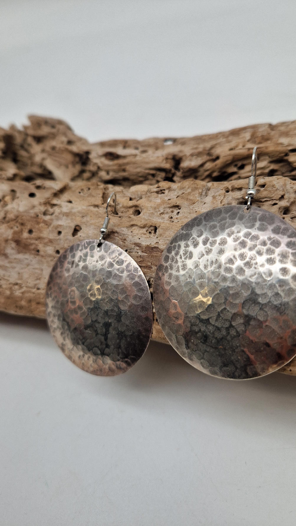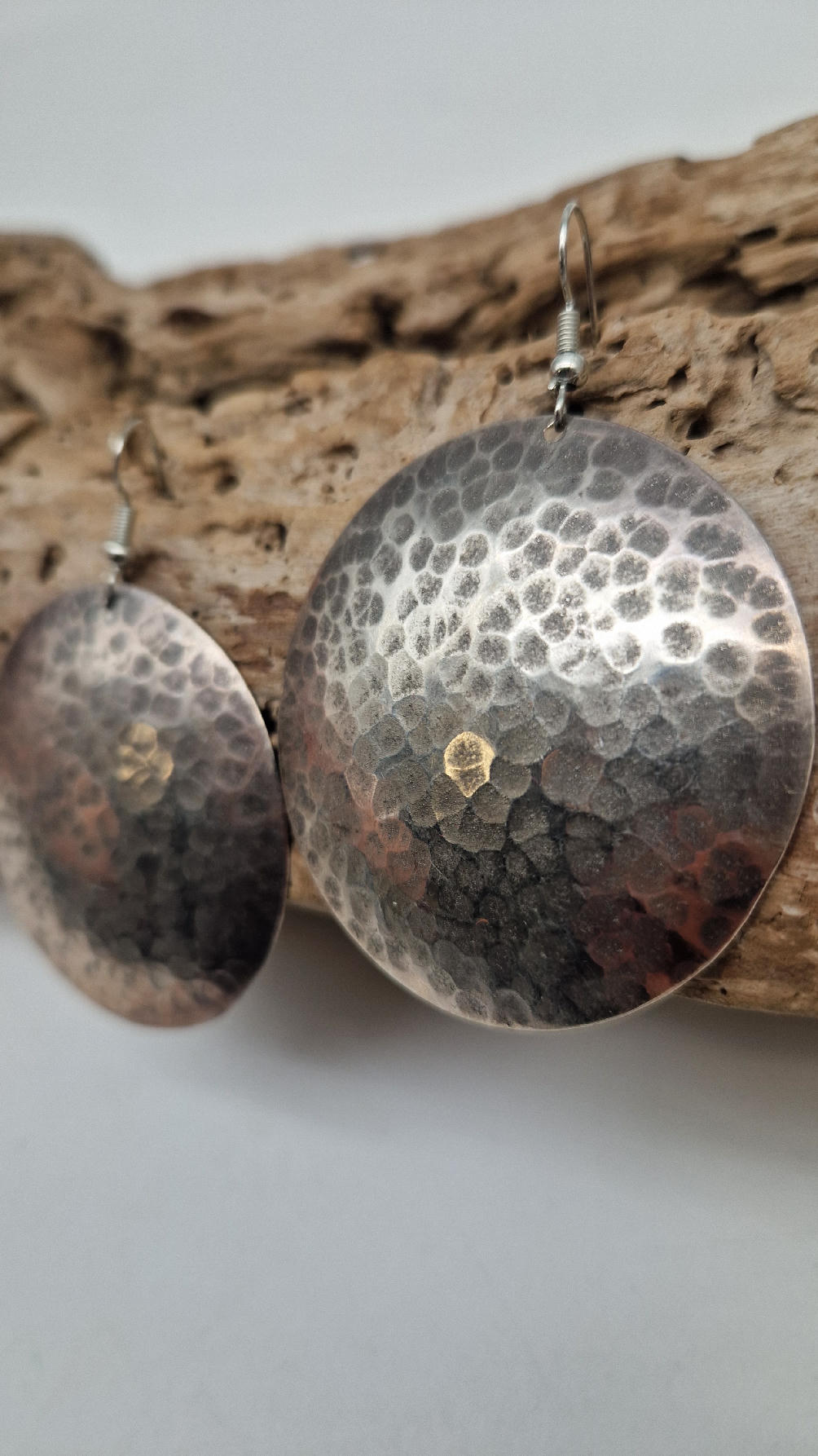 Jedne z tych moich ulubionych, duże , okrągłe kolczyki….noszę je bardzo często… zrobione z miedzi i srebrzone… kute, patynowane na czarno, przestrzenne, niebanalne, tajemnicze , takie wyjątkowe, ale do wszystkiego, cudne!