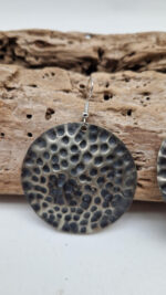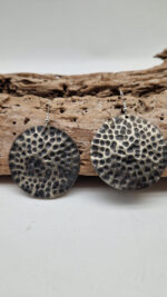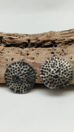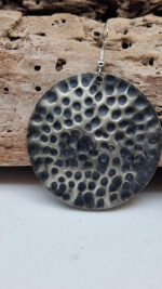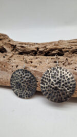 Duże i lekkie kolczyki zrobione z alpaki ,kute, postarzone, patynowane na czarno, z lekkimi prześwitami dwustronne, z fajowymi wypustkami, przestrzenne, niebanalne, tajemnicze , takie wyjątkowe, ale do wszystkiego, cudne!