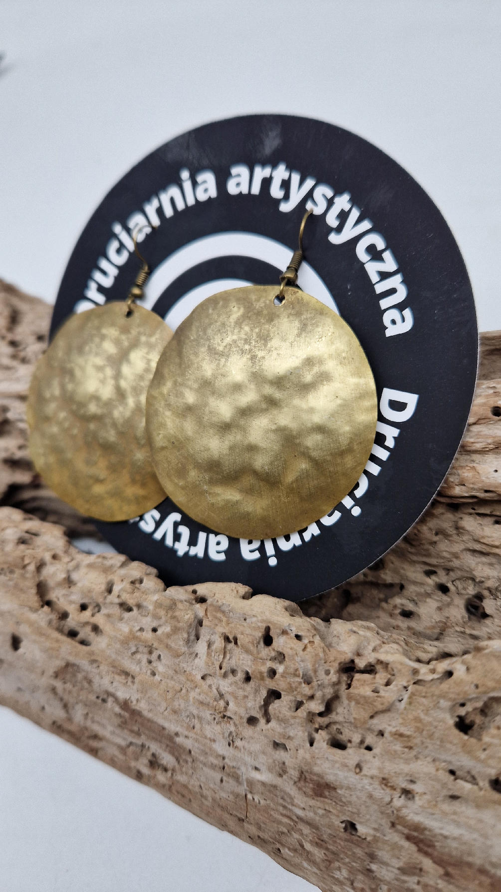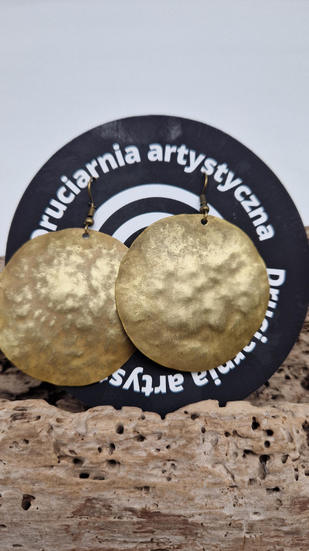 Duże i niebanalne mosiężne kolczyki, kute i patynowane …. piękne jak księżyc w pełni…jak księżyc, …cudne