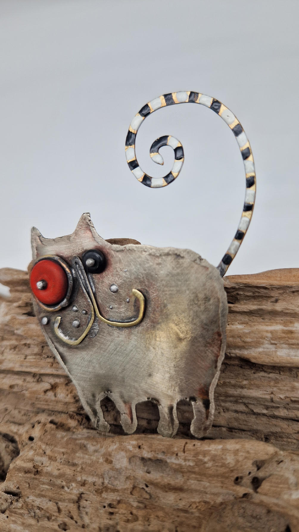 Cudny kot, który może być zawsze z Tobą . Zwariowany i radosny, z oczami w dwóch kolorach, z malowanym ogonem w paski