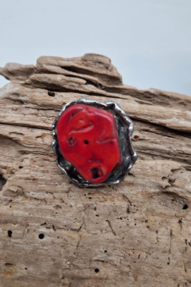 Niezwykle piękny,  podłużny, nieregularny ,  mega duży pierścionek z malachitem. Cudny malachit, zielony jak liście latem …albo malachit po prostu….oprawiony w kutą i patynowaną miedź. Piękna metaloplastyka z pięknym kamieniem . Pierścionek ma regulowaną obrączkę, więc pasuje na każdy palec…ale możesz powiesić go na łańcuszku lub rzemieniu, jeśli nie lubisz pierścionków, a podoba Ci się forma i kamień…