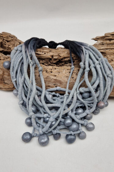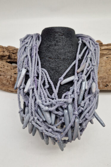 Naszyjnik wykonany z…..dziesiątek metrów wełny, bawełny i jedwabiu.