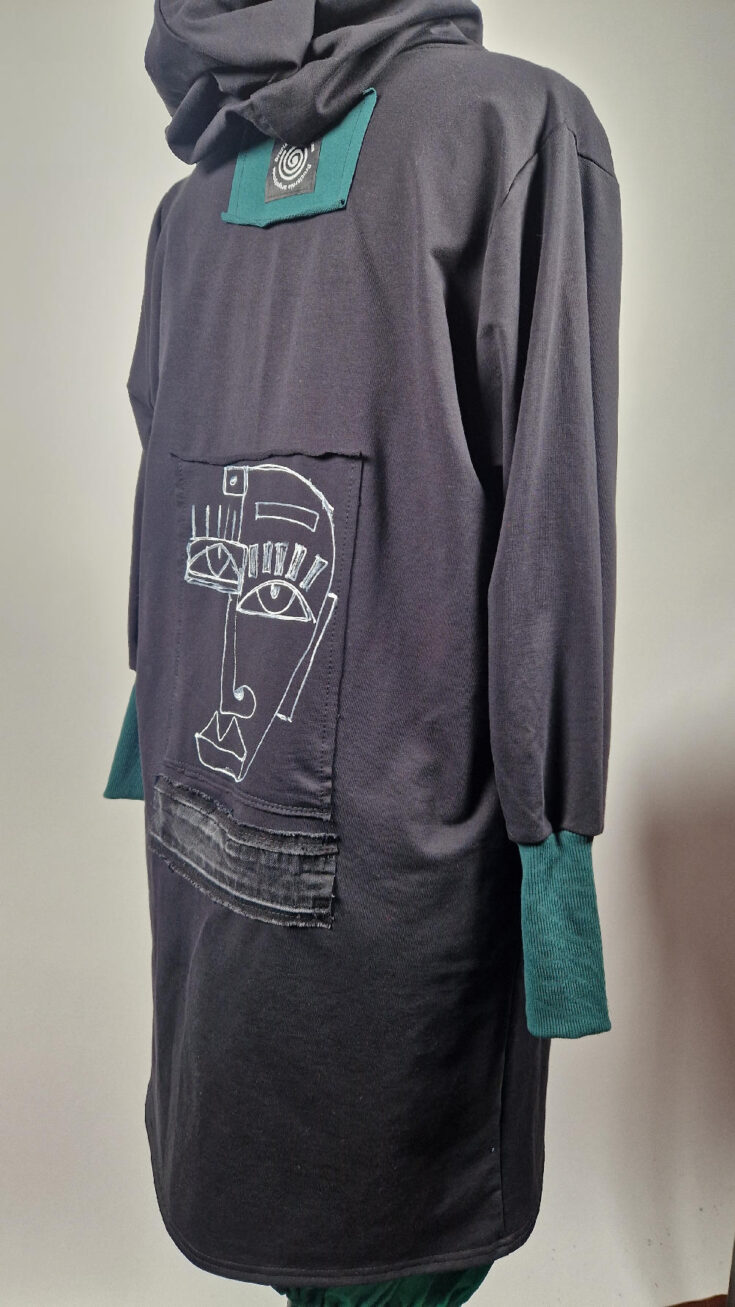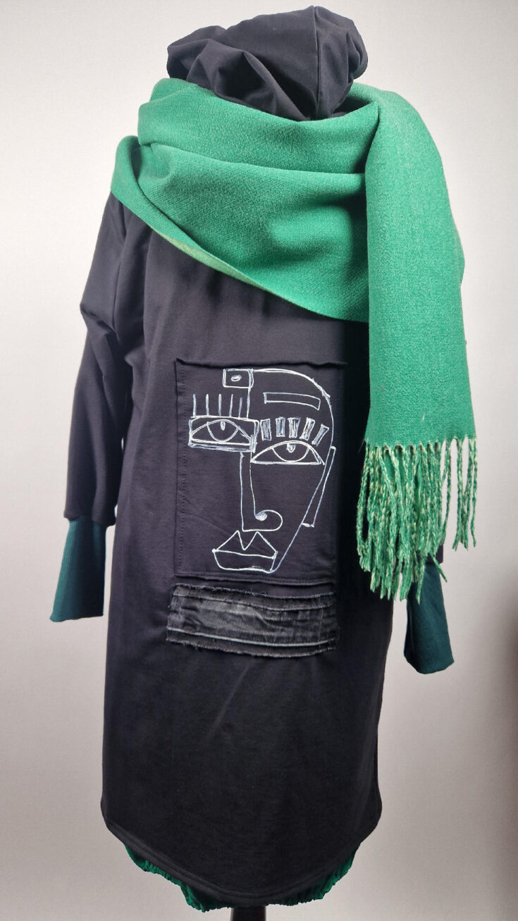 Otulak, czyli super bluzo-płaszcz idealny na wszystkie podróże, obłędnie zgrabny, wygodny, wszystko zakrywający COŚ , który pokochasz od pierwszego założenia. Ten Otulak uszyty jest z mięciutkiej , ,,drapanej,, bawełny, ma kontrastowe mankiety, jest wygodny, oryginalny, niebanalny i malowany oczywiście ręcznie!